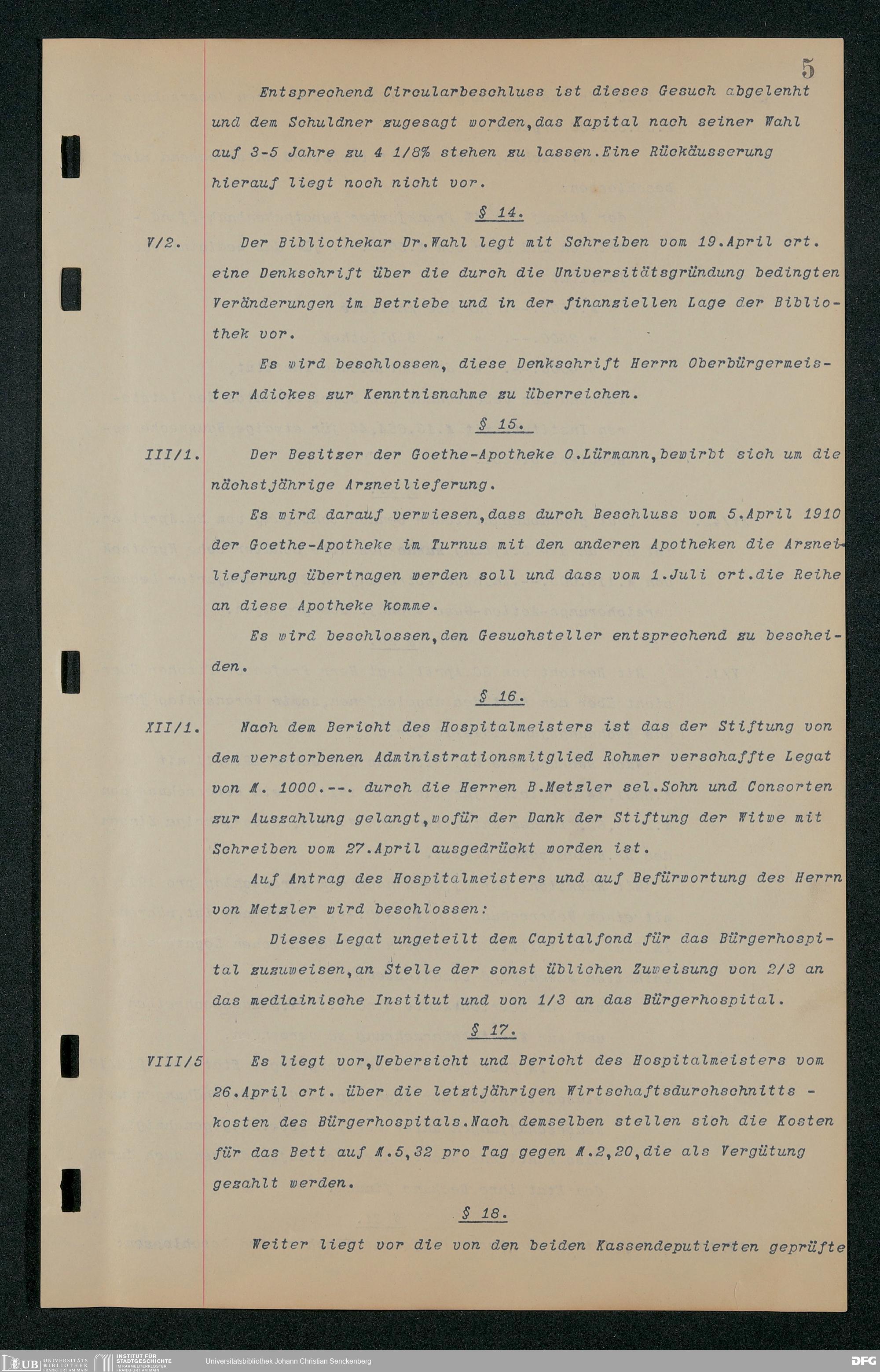 V48 Dr. Senckenbergische Stiftung, 157 - ... Protokollbuch der Administrationssitzungen der Dr. Senckenbergischen Stiftung, Bd. 3