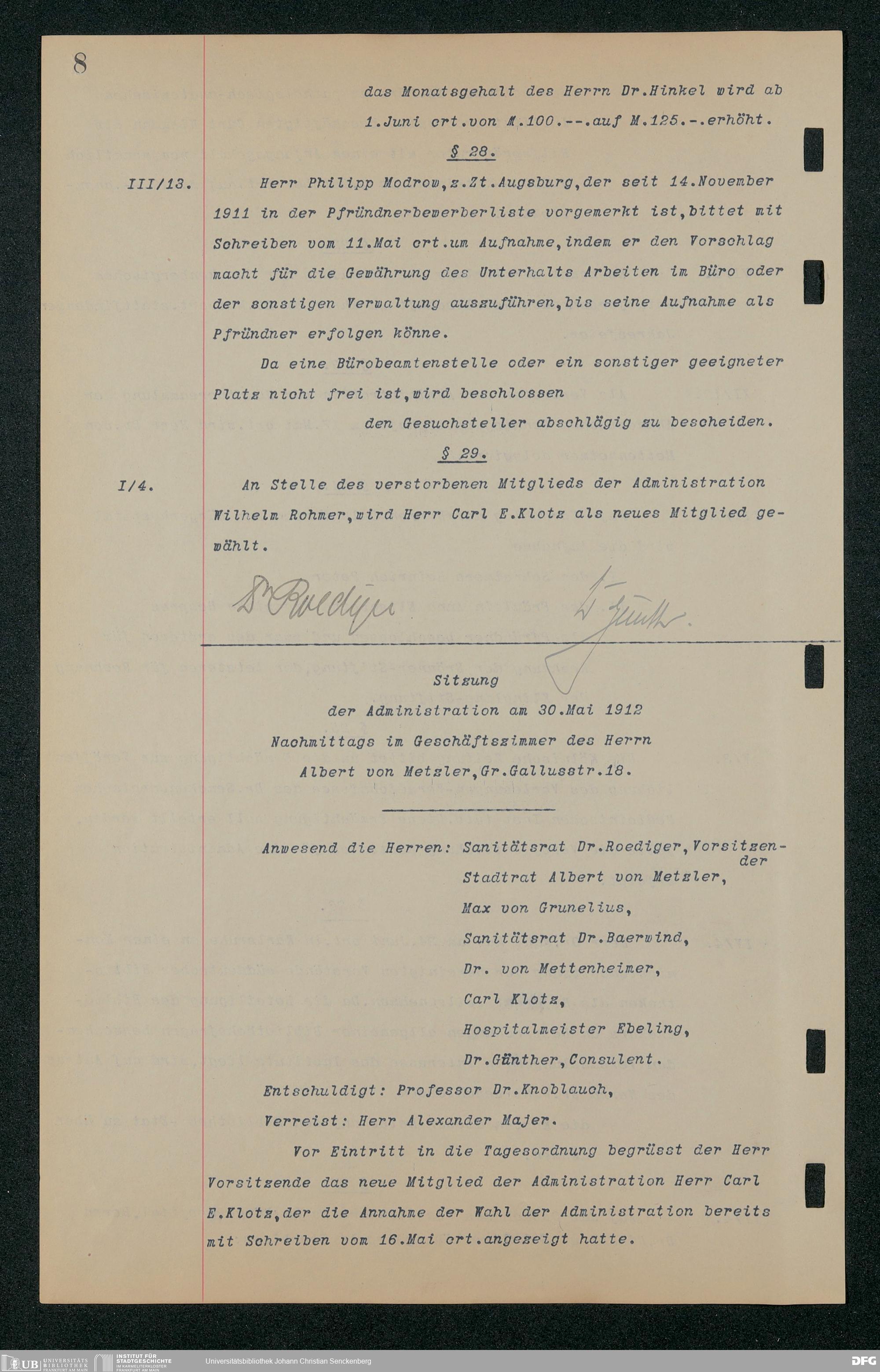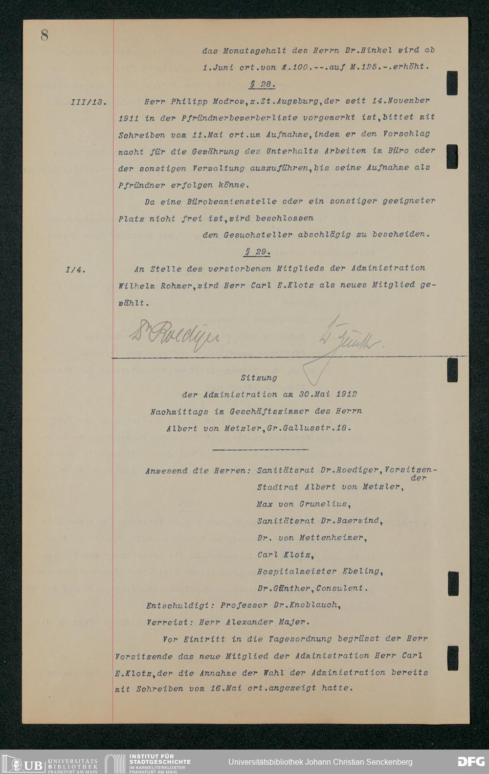 V48 Dr. Senckenbergische Stiftung, 157 - ... Protokollbuch der Administrationssitzungen der Dr. Senckenbergischen Stiftung, Bd. 3