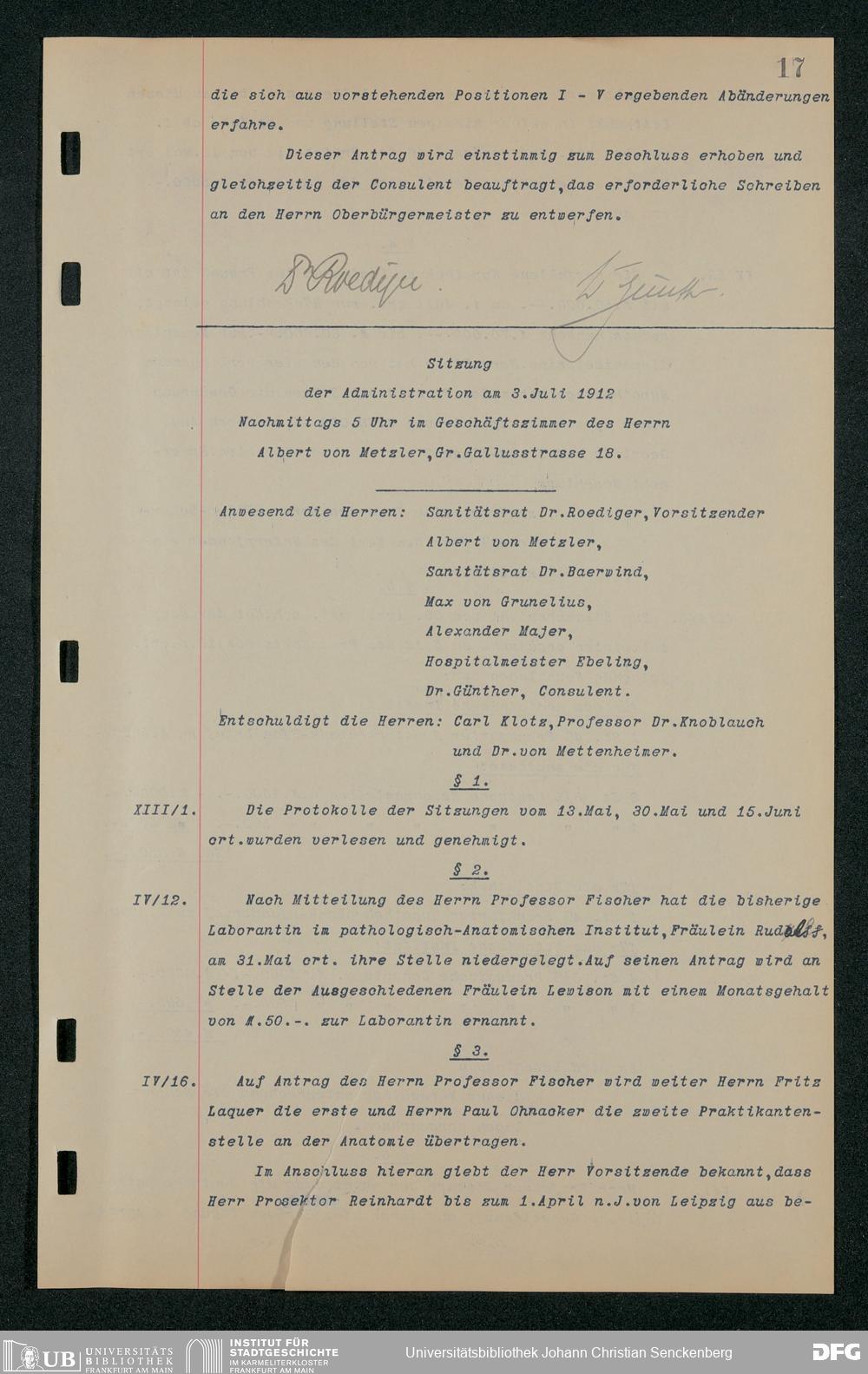 V48 Dr. Senckenbergische Stiftung, 157 - ... Protokollbuch der Administrationssitzungen der Dr. Senckenbergischen Stiftung, Bd. 3