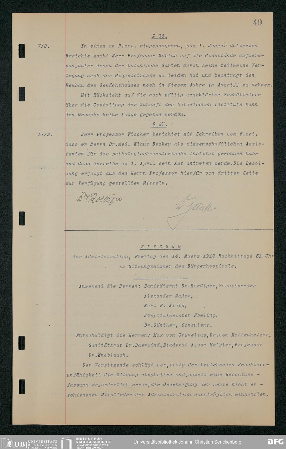 V48 Dr. Senckenbergische Stiftung, 157 - ... Protokollbuch der Administrationssitzungen der Dr. Senckenbergischen Stiftung, Bd. 3