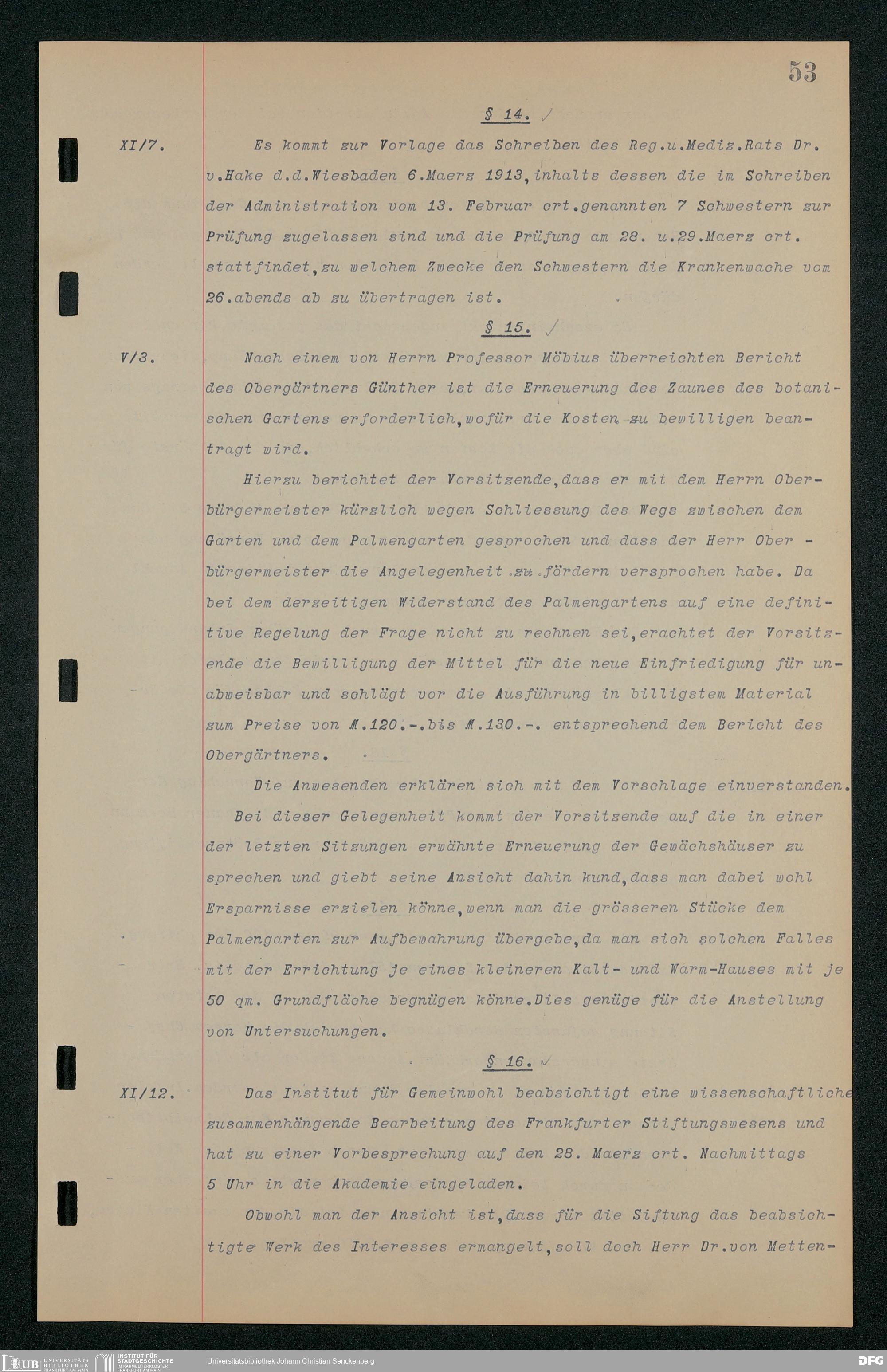 V48 Dr. Senckenbergische Stiftung, 157 - ... Protokollbuch der Administrationssitzungen der Dr. Senckenbergischen Stiftung, Bd. 3