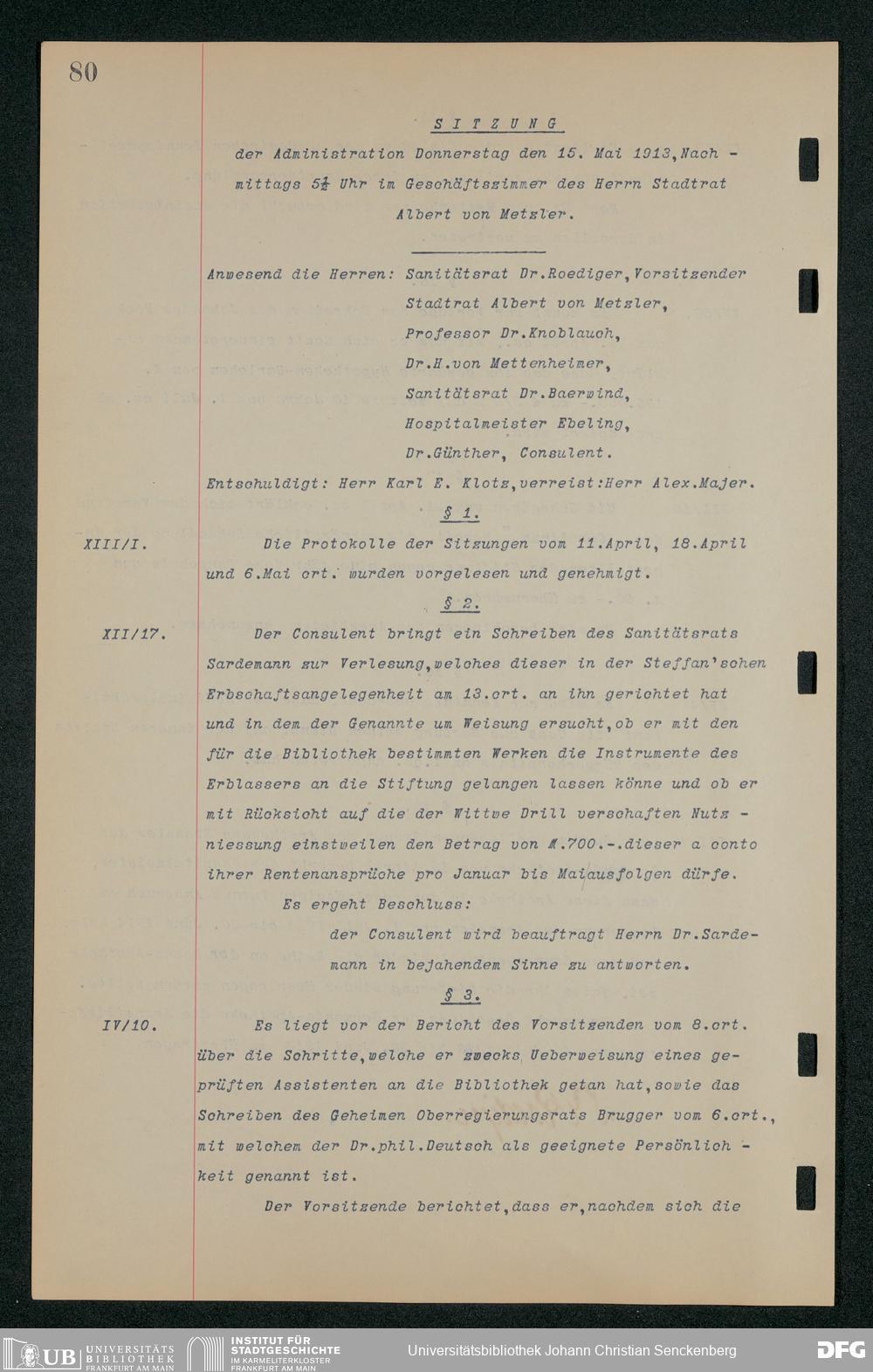 V48 Dr. Senckenbergische Stiftung, 157 - ... Protokollbuch der Administrationssitzungen der Dr. Senckenbergischen Stiftung, Bd. 3