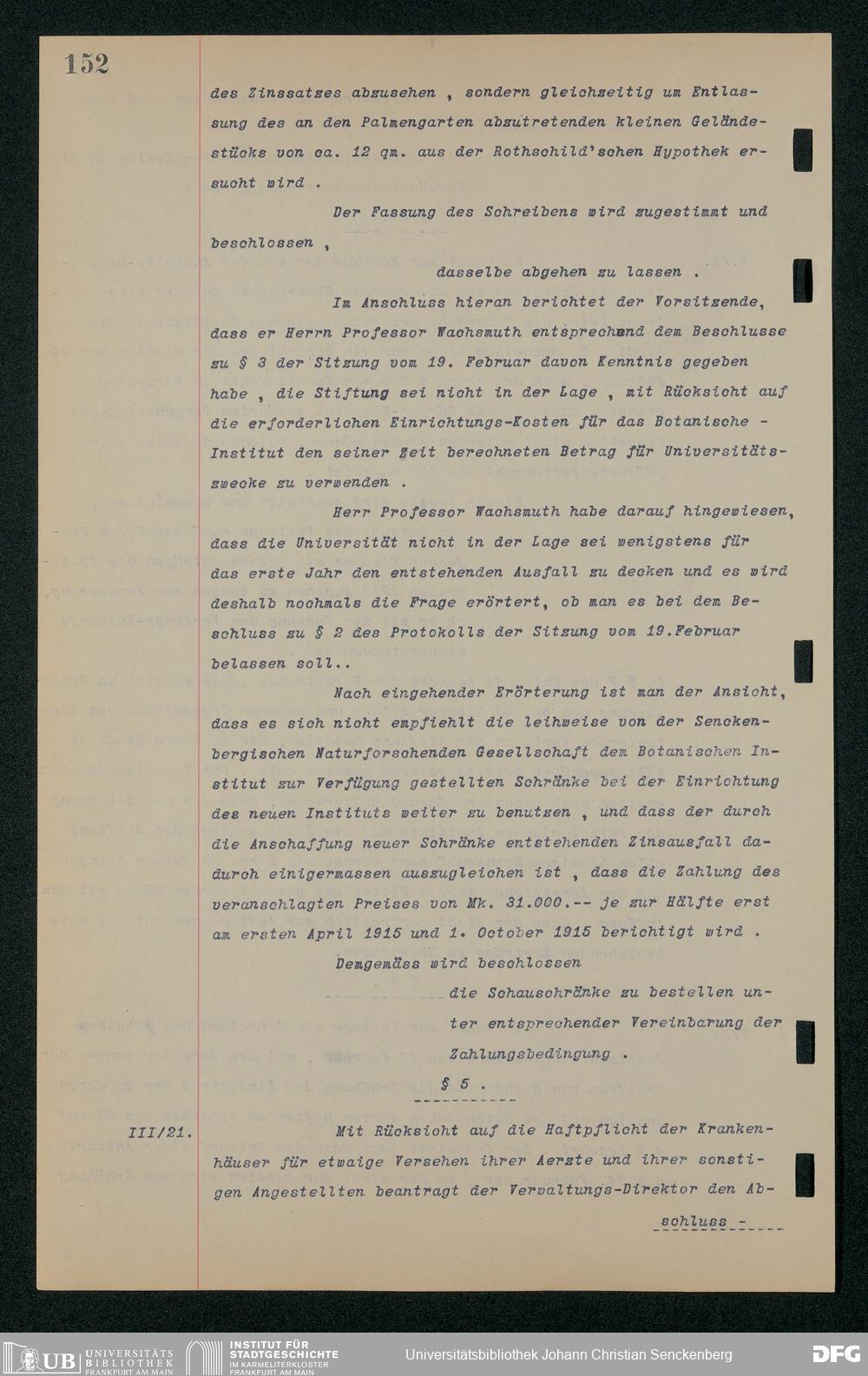 V48 Dr. Senckenbergische Stiftung, 157 - ... Protokollbuch der Administrationssitzungen der Dr. Senckenbergischen Stiftung, Bd. 3