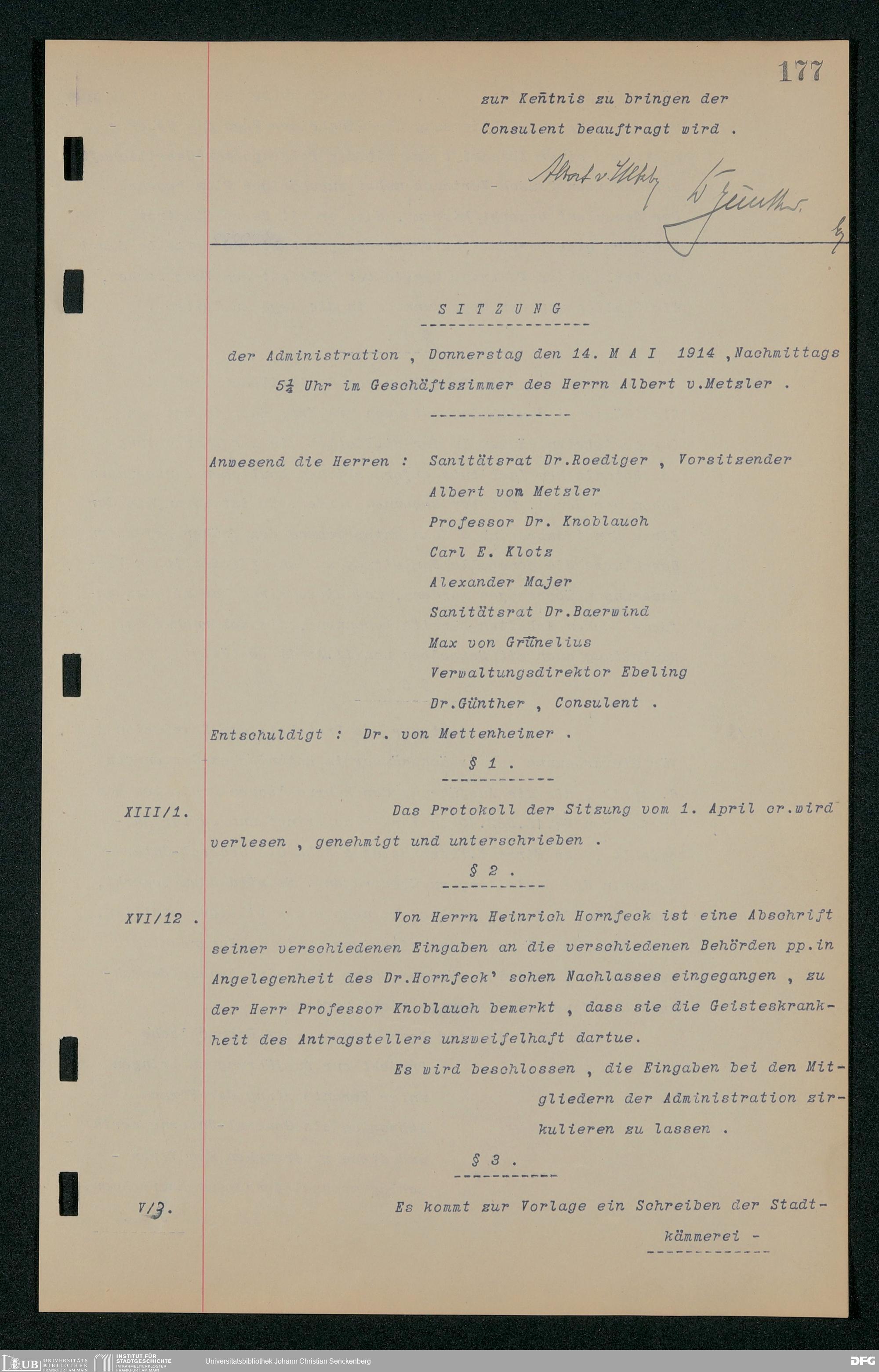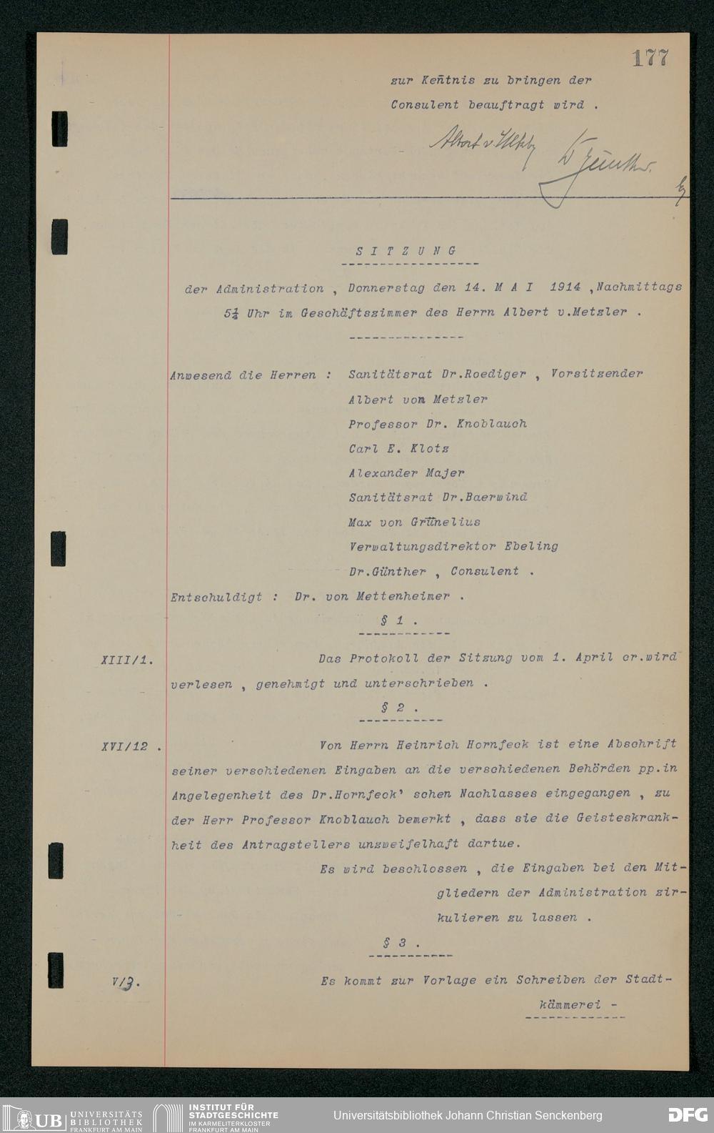V48 Dr. Senckenbergische Stiftung, 157 - ... Protokollbuch der Administrationssitzungen der Dr. Senckenbergischen Stiftung, Bd. 3