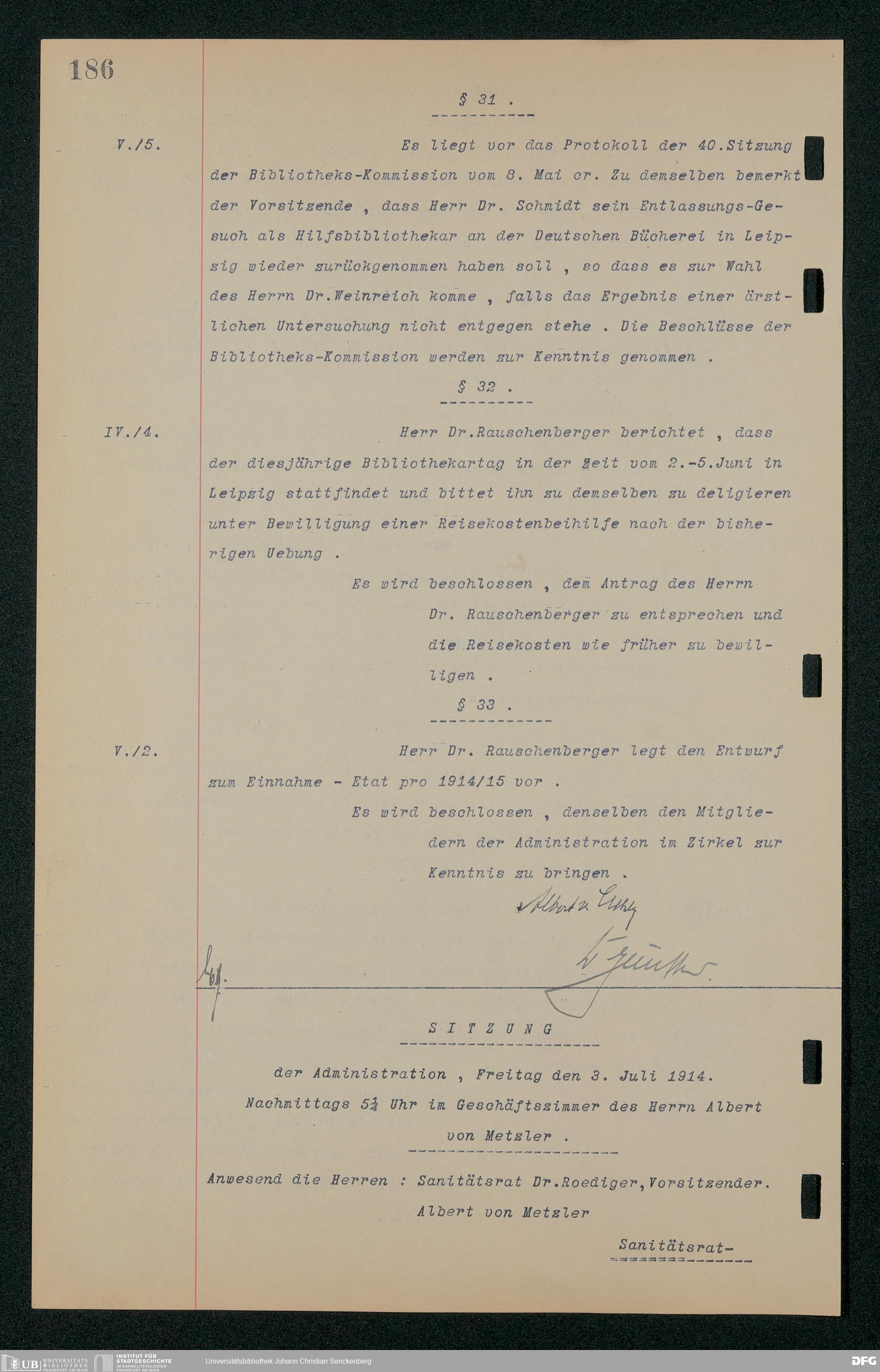 V48 Dr. Senckenbergische Stiftung, 157 - ... Protokollbuch der Administrationssitzungen der Dr. Senckenbergischen Stiftung, Bd. 3