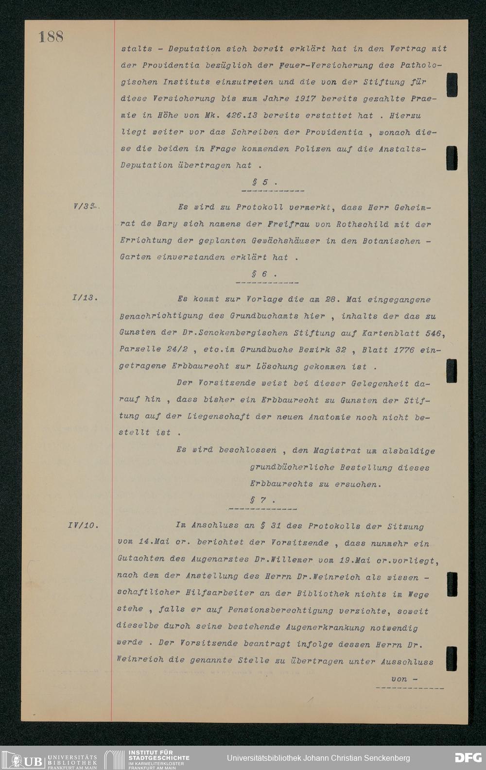 V48 Dr. Senckenbergische Stiftung, 157 - ... Protokollbuch der Administrationssitzungen der Dr. Senckenbergischen Stiftung, Bd. 3