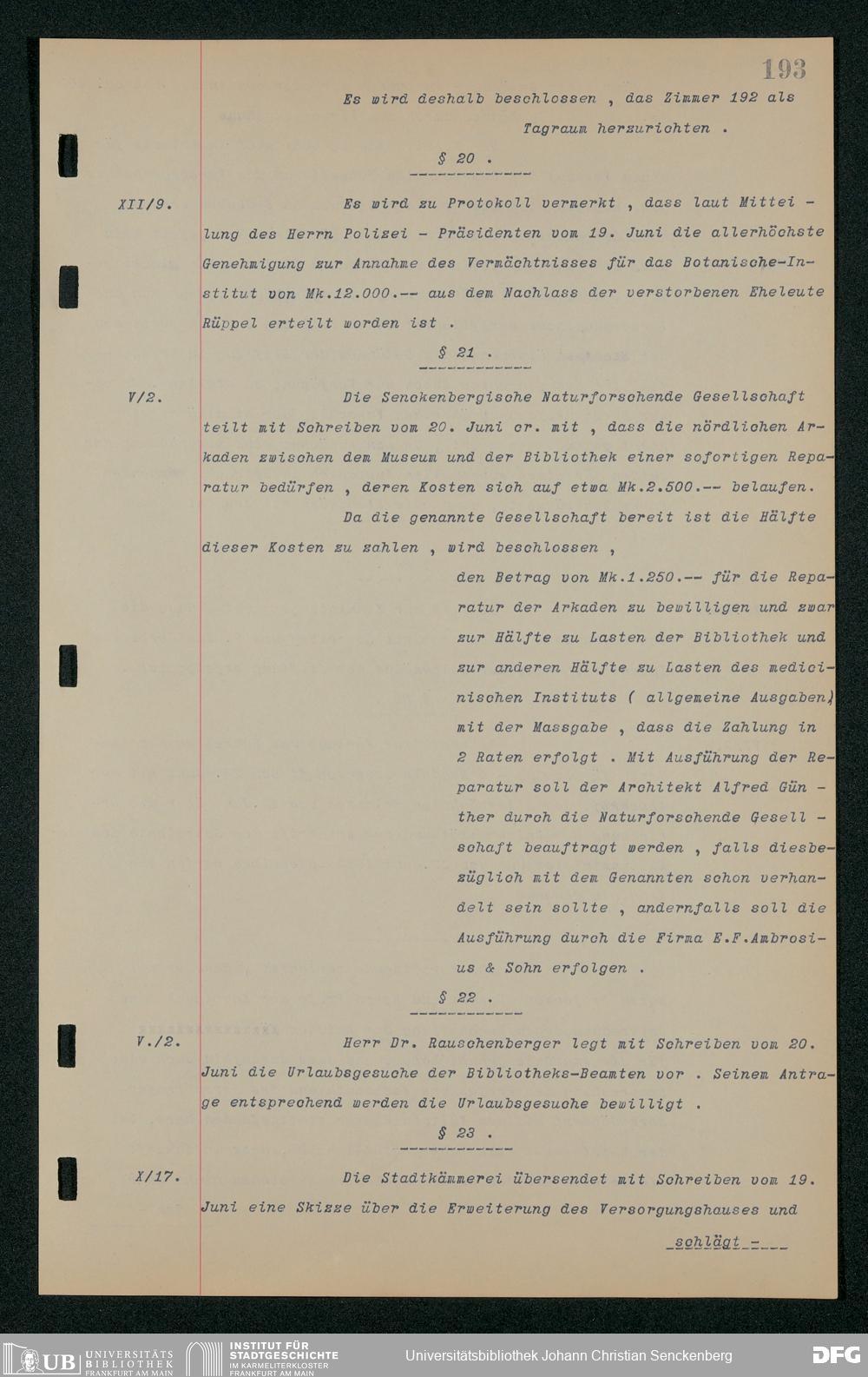 V48 Dr. Senckenbergische Stiftung, 157 - ... Protokollbuch der Administrationssitzungen der Dr. Senckenbergischen Stiftung, Bd. 3