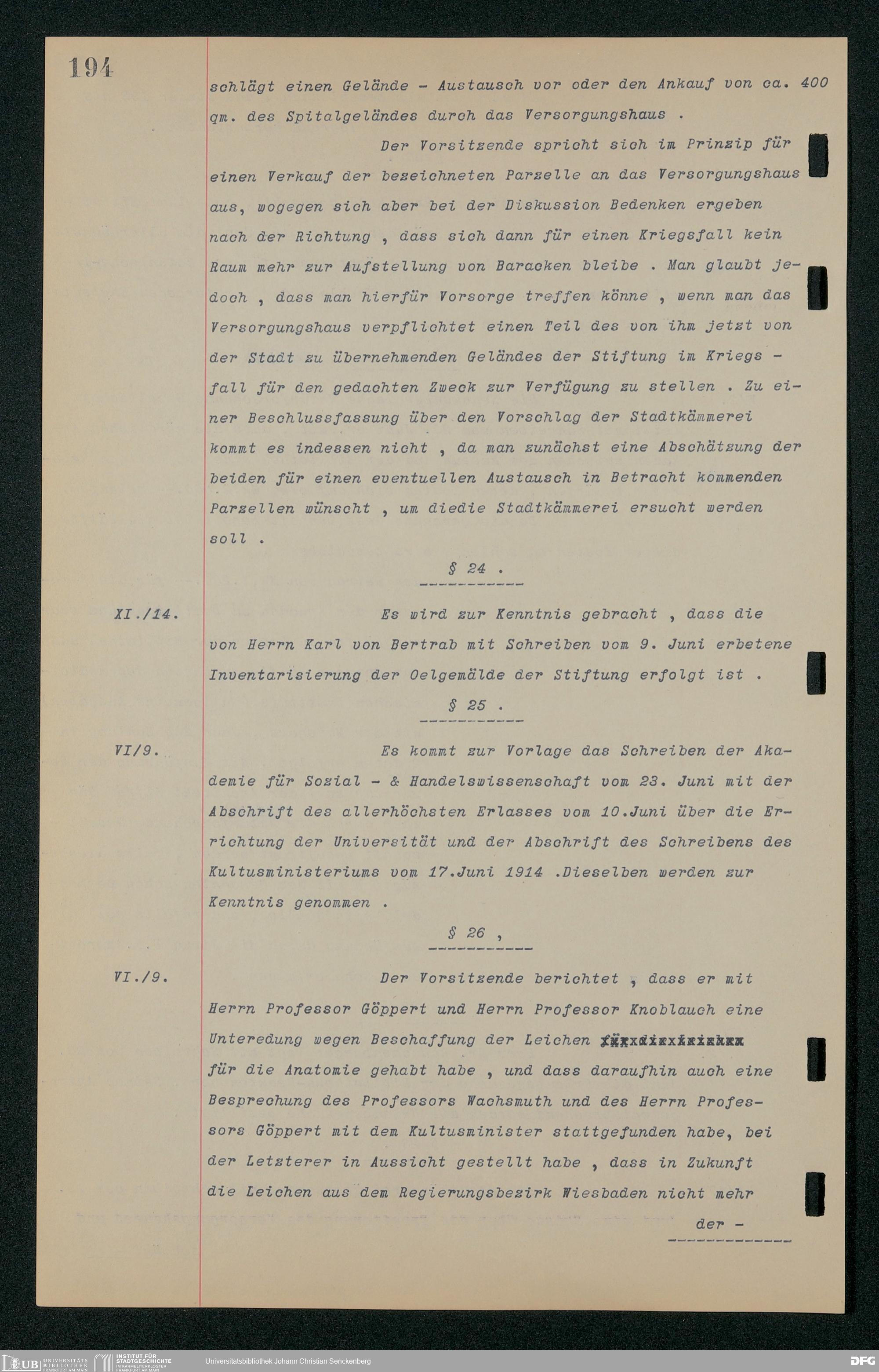 V48 Dr. Senckenbergische Stiftung, 157 - ... Protokollbuch der Administrationssitzungen der Dr. Senckenbergischen Stiftung, Bd. 3