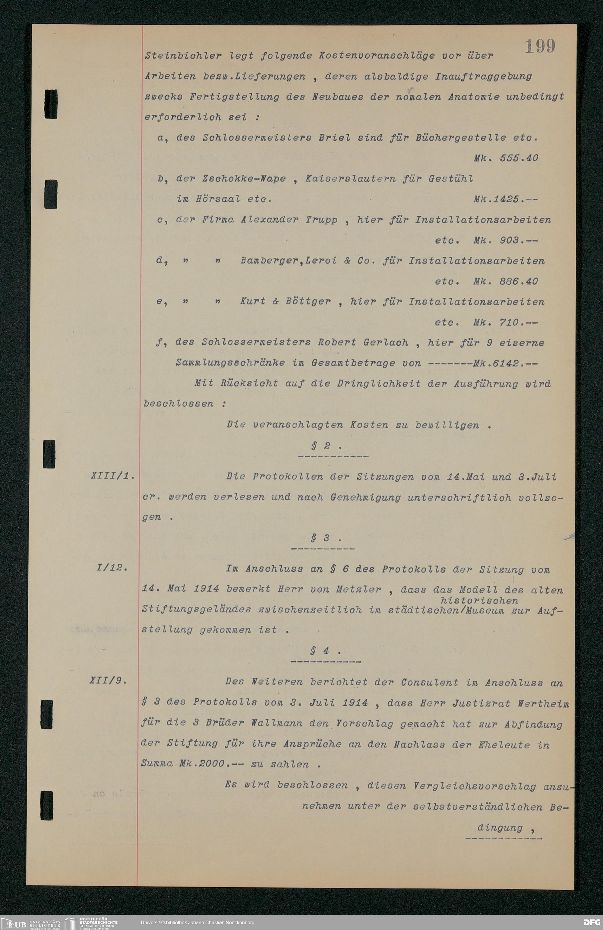 V48 Dr. Senckenbergische Stiftung, 157 - ... Protokollbuch der Administrationssitzungen der Dr. Senckenbergischen Stiftung, Bd. 3