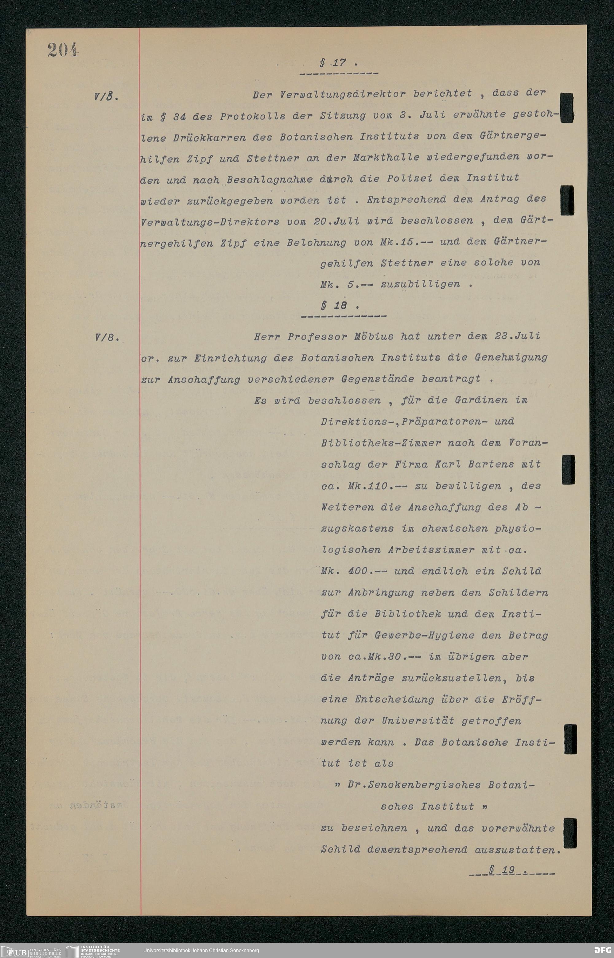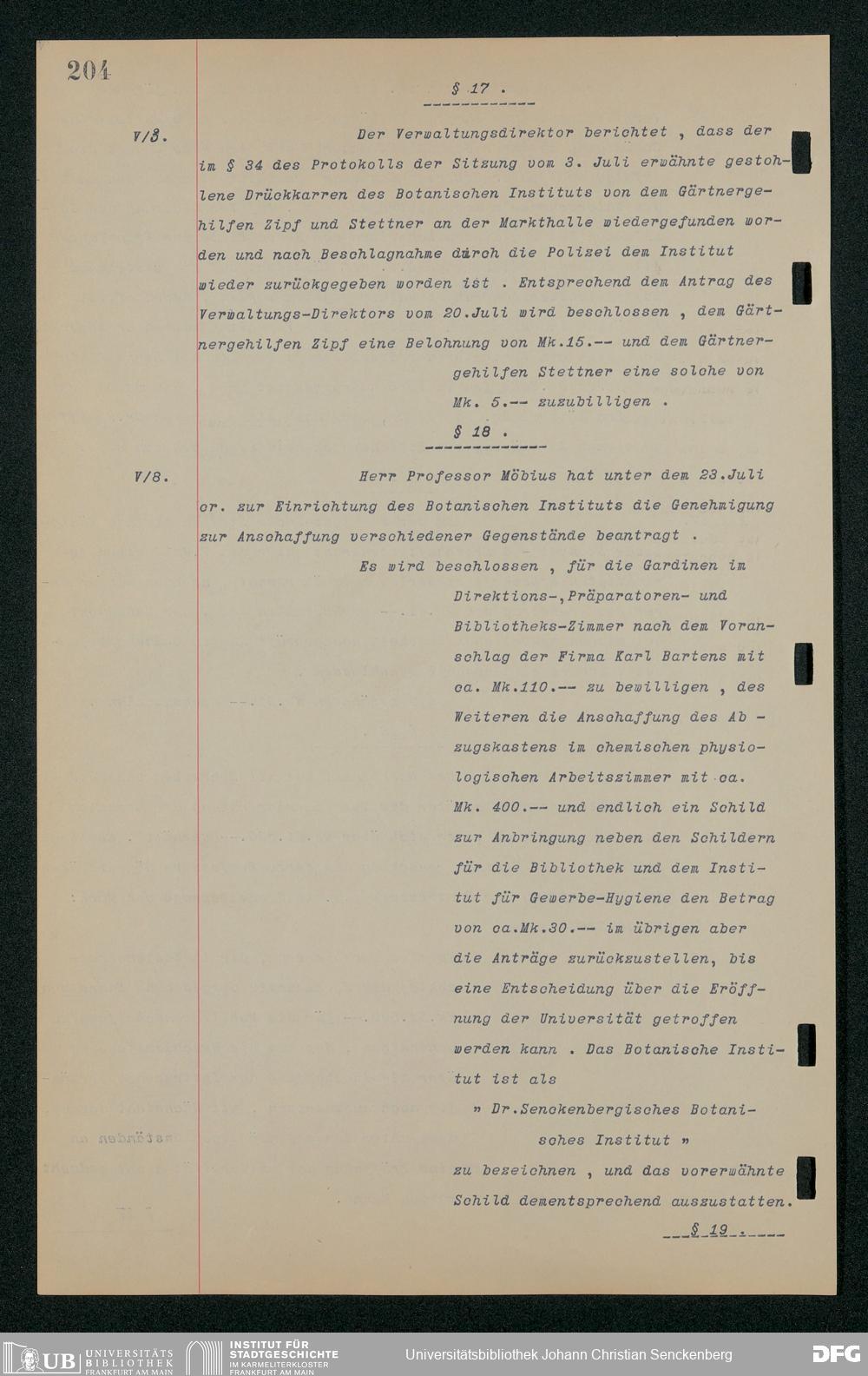 V48 Dr. Senckenbergische Stiftung, 157 - ... Protokollbuch der Administrationssitzungen der Dr. Senckenbergischen Stiftung, Bd. 3