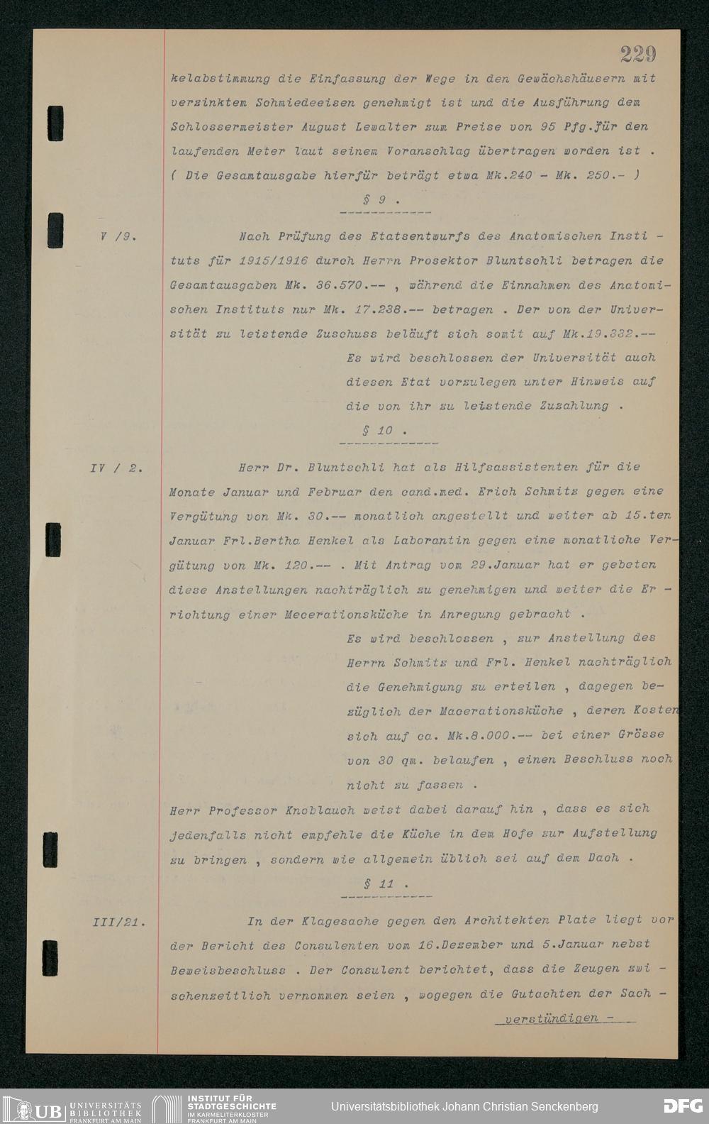 V48 Dr. Senckenbergische Stiftung, 157 - ... Protokollbuch der Administrationssitzungen der Dr. Senckenbergischen Stiftung, Bd. 3