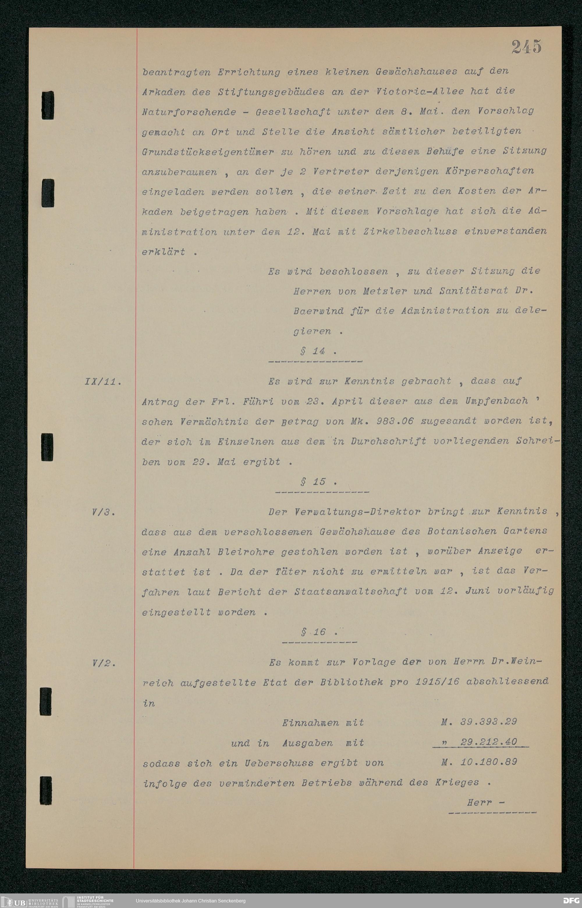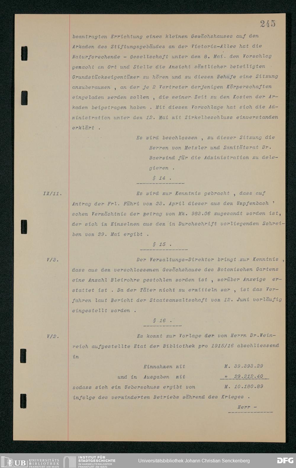 V48 Dr. Senckenbergische Stiftung, 157 - ... Protokollbuch der Administrationssitzungen der Dr. Senckenbergischen Stiftung, Bd. 3