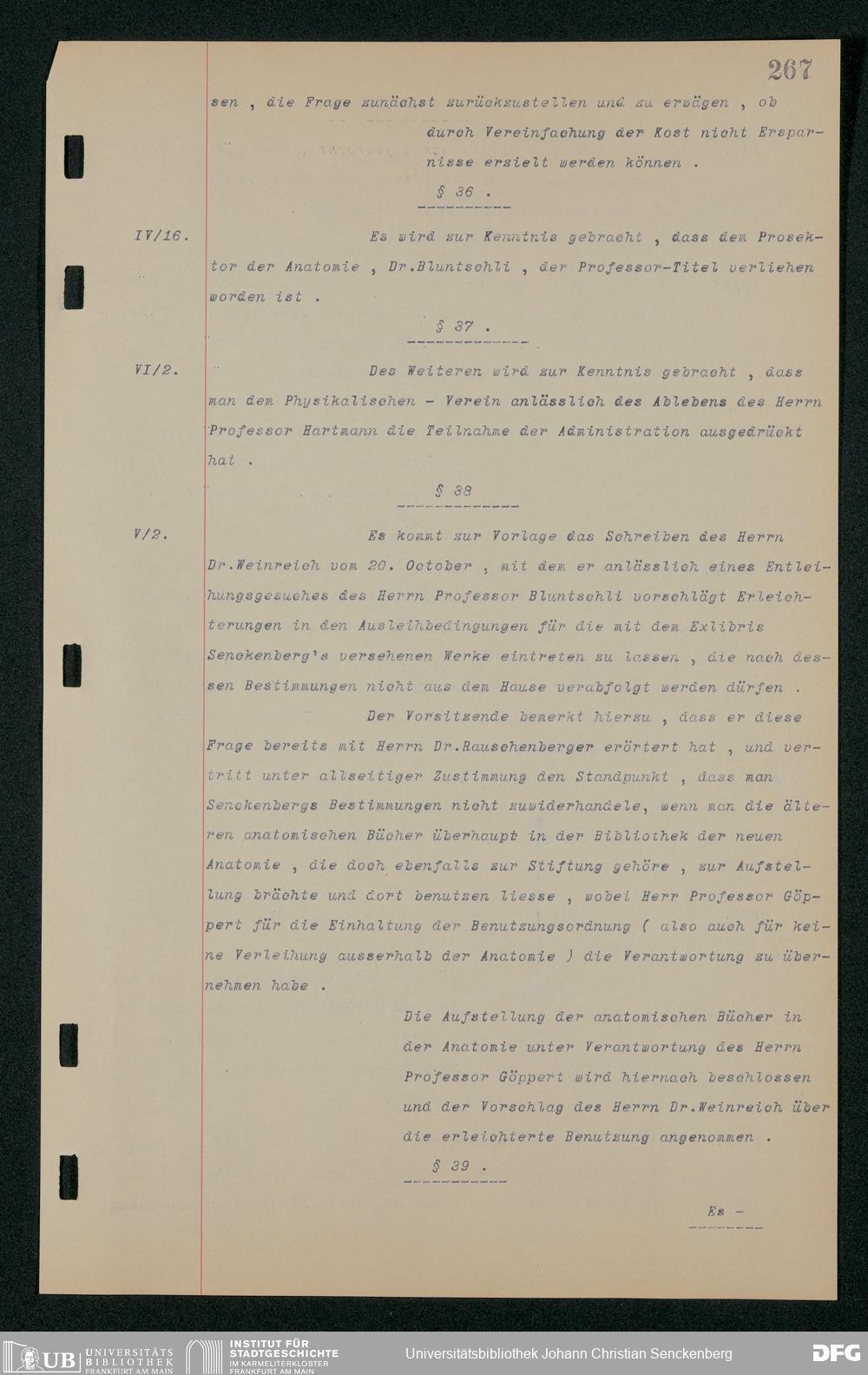 V48 Dr. Senckenbergische Stiftung, 157 - ... Protokollbuch der Administrationssitzungen der Dr. Senckenbergischen Stiftung, Bd. 3