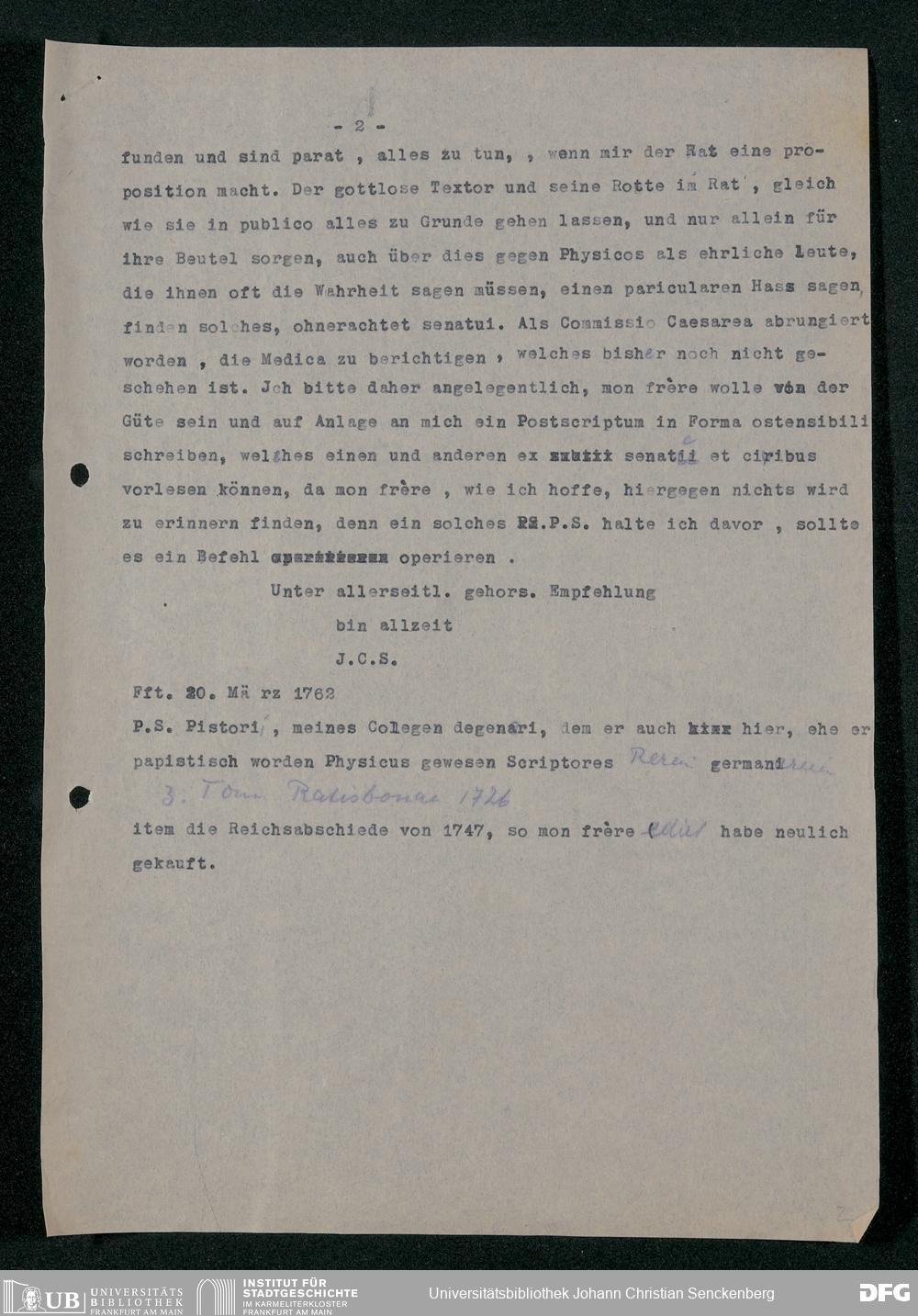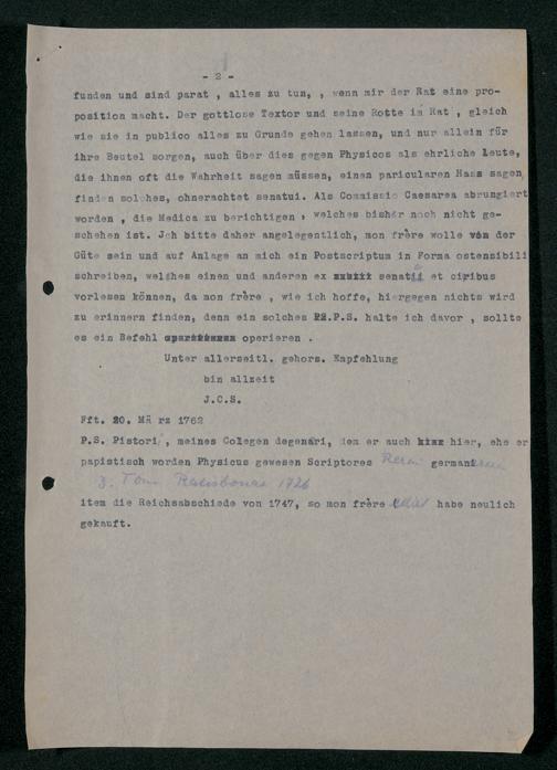 V48 Dr. Senckenbergische Stiftung, 202 - ... Transkriptionen der Briefe Johann Christian Senckenbergs an seinen Bruder Heinrich Christian von Senckenberg in Wien, Bd. 1