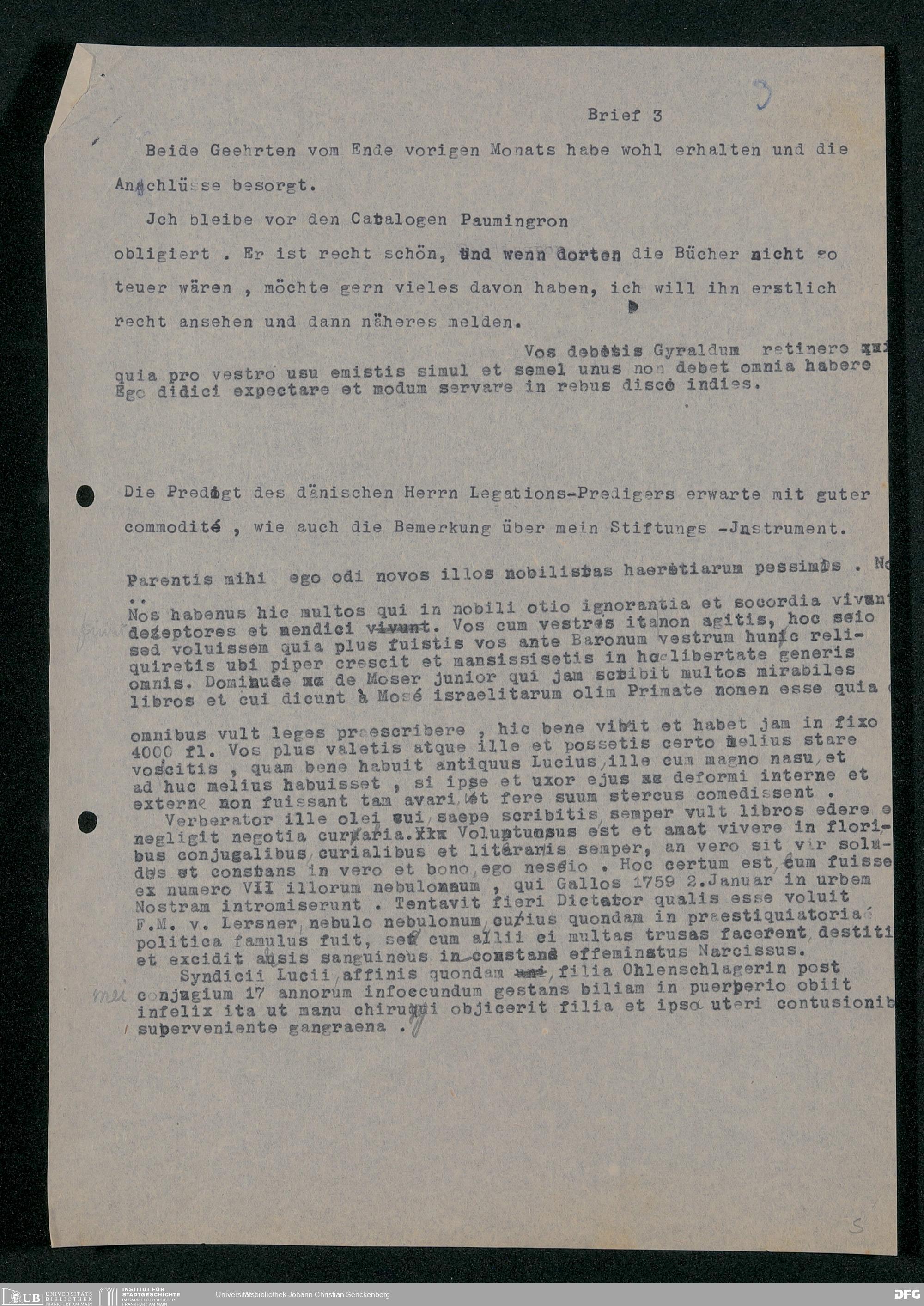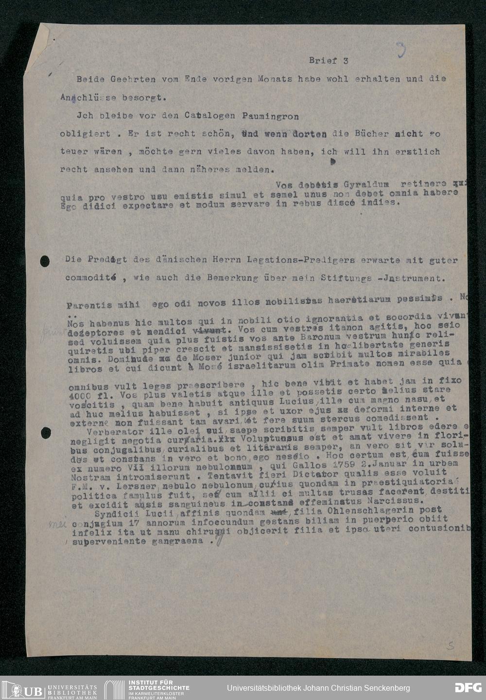 V48 Dr. Senckenbergische Stiftung, 202 - ... Transkriptionen der Briefe Johann Christian Senckenbergs an seinen Bruder Heinrich Christian von Senckenberg in Wien, Bd. 1