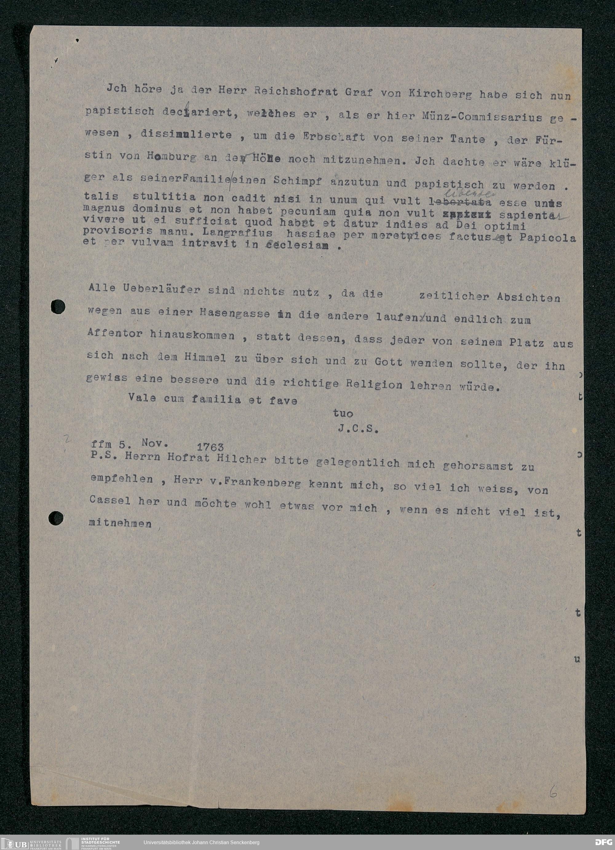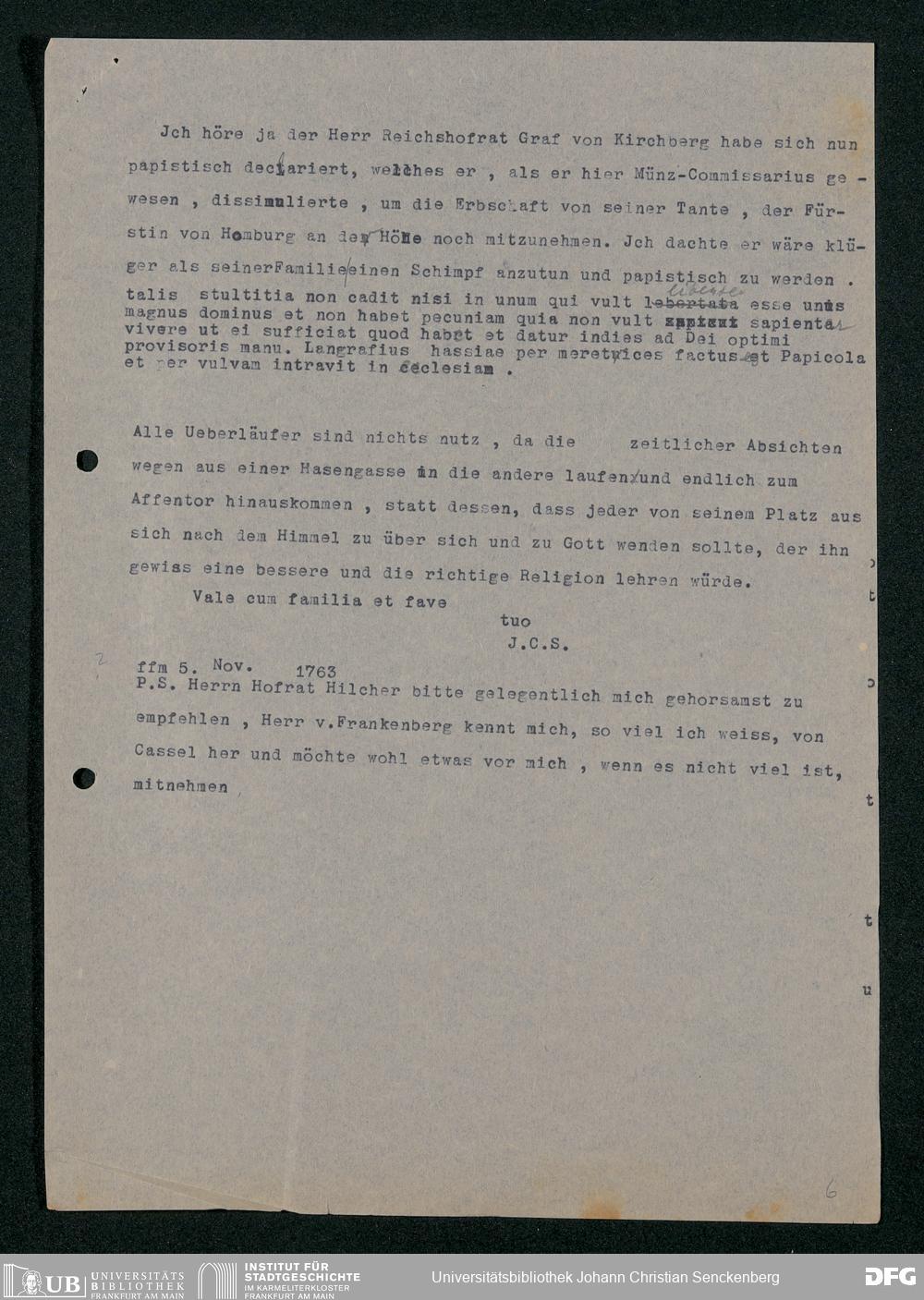 V48 Dr. Senckenbergische Stiftung, 202 - ... Transkriptionen der Briefe Johann Christian Senckenbergs an seinen Bruder Heinrich Christian von Senckenberg in Wien, Bd. 1