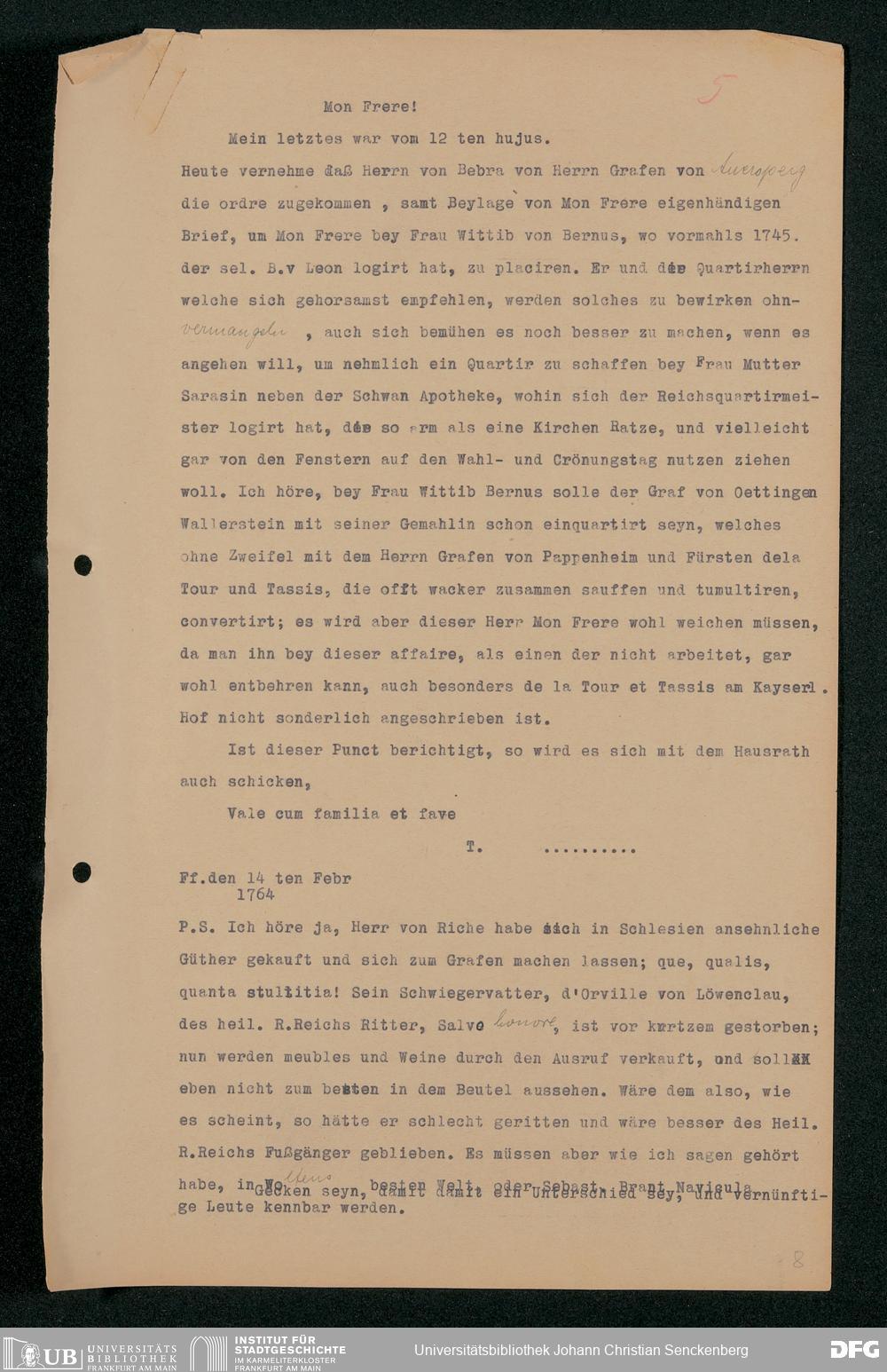 V48 Dr. Senckenbergische Stiftung, 202 - ... Transkriptionen der Briefe Johann Christian Senckenbergs an seinen Bruder Heinrich Christian von Senckenberg in Wien, Bd. 1