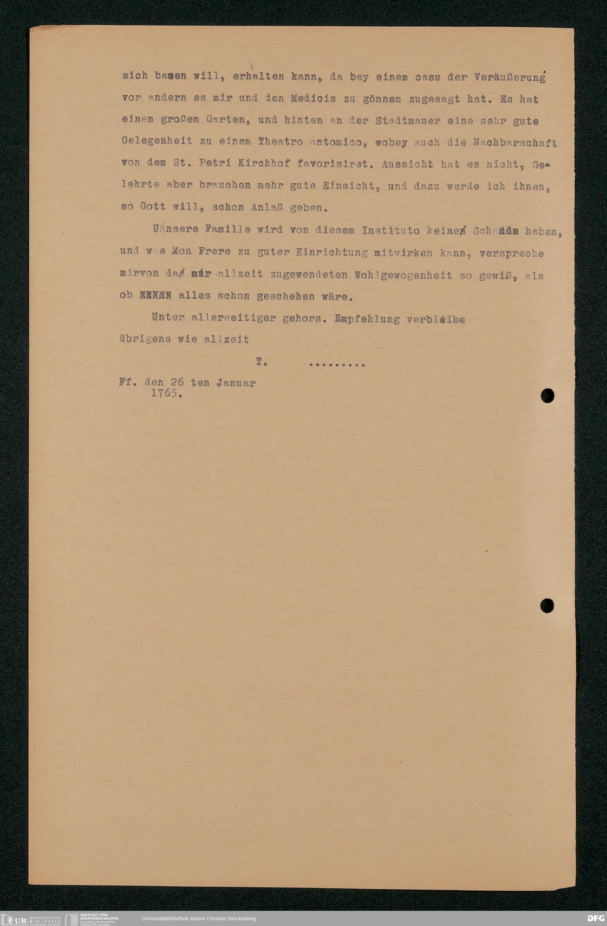 V48 Dr. Senckenbergische Stiftung, 202 - ... Transkriptionen der Briefe Johann Christian Senckenbergs an seinen Bruder Heinrich Christian von Senckenberg in Wien, Bd. 1