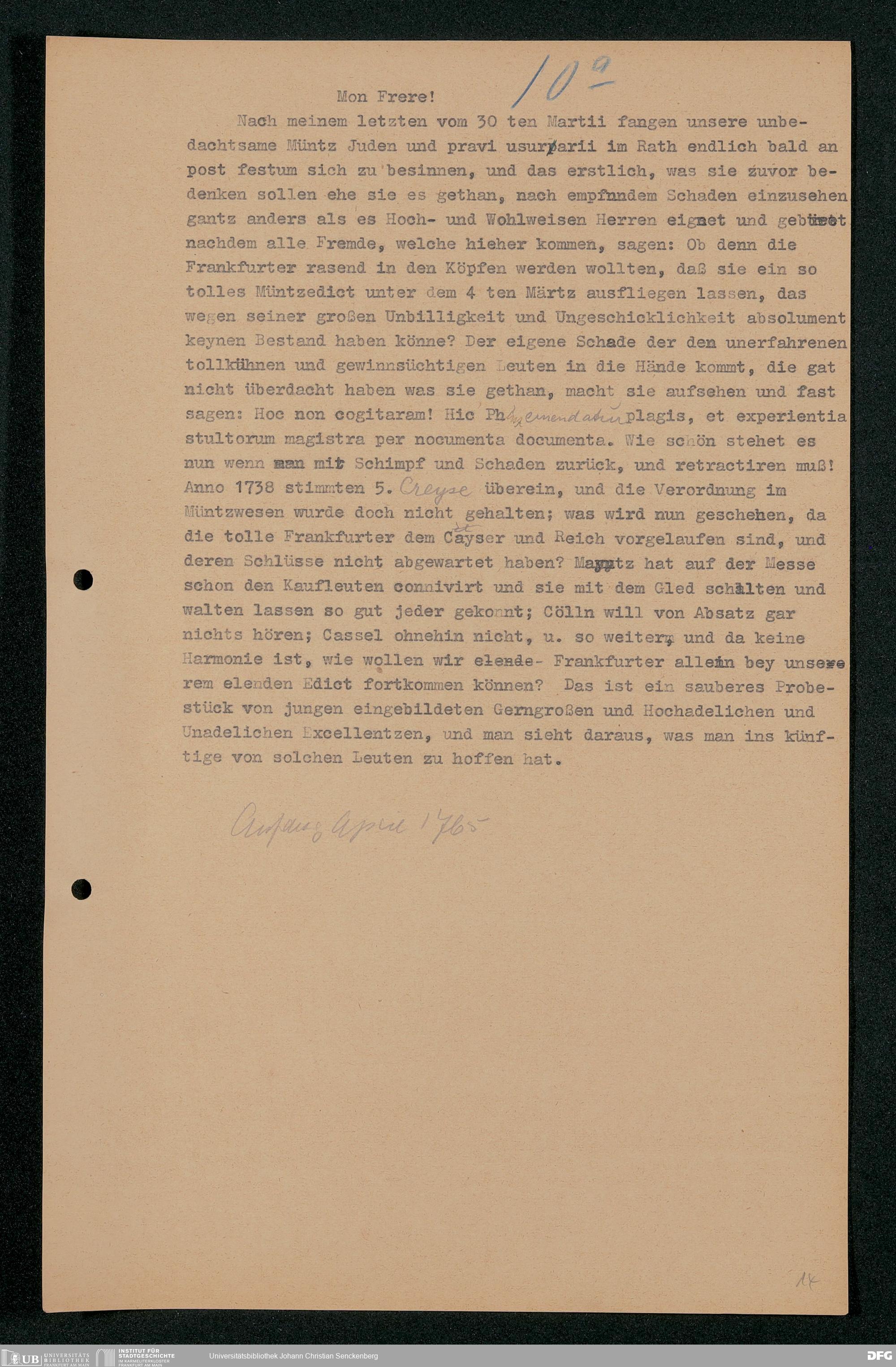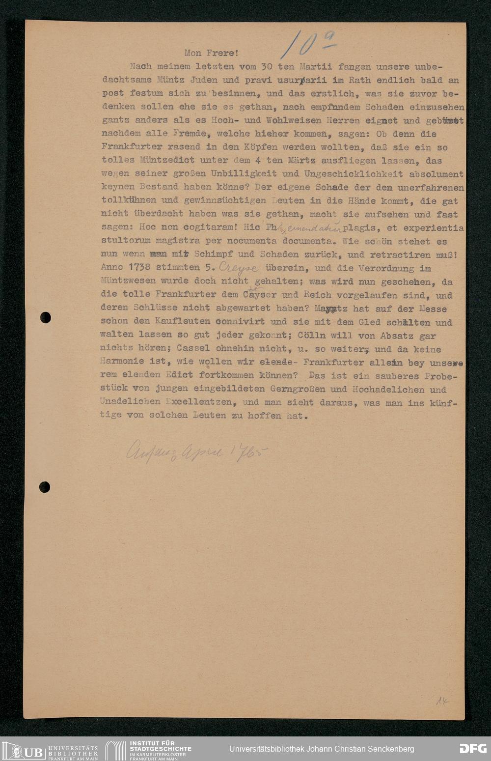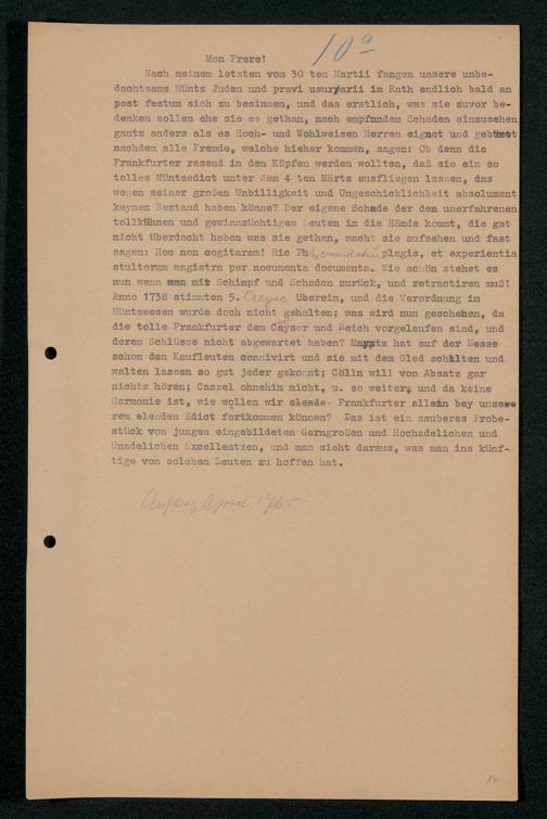 V48 Dr. Senckenbergische Stiftung, 202 - ... Transkriptionen der Briefe Johann Christian Senckenbergs an seinen Bruder Heinrich Christian von Senckenberg in Wien, Bd. 1