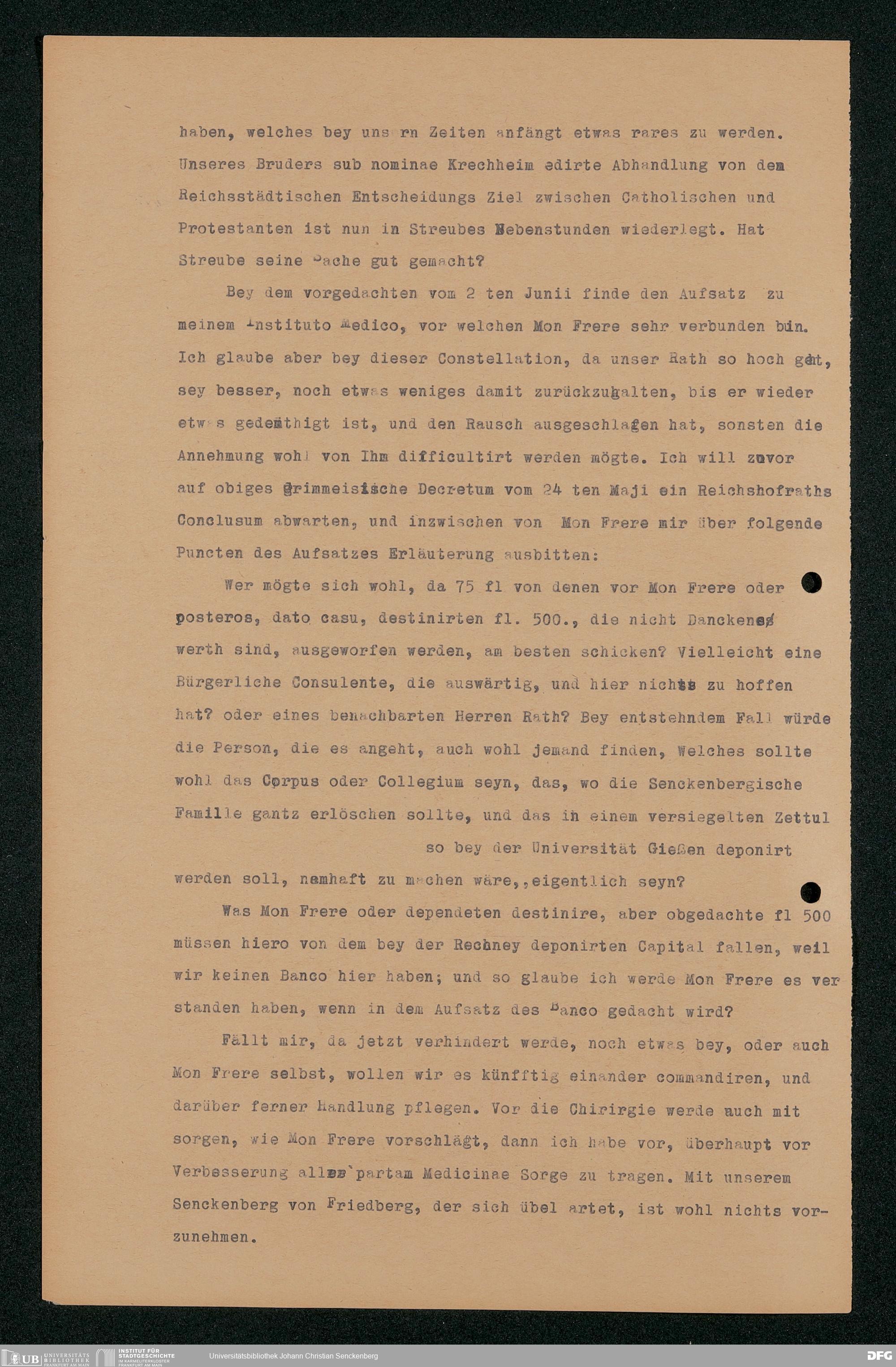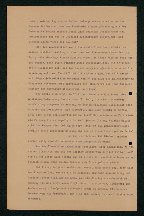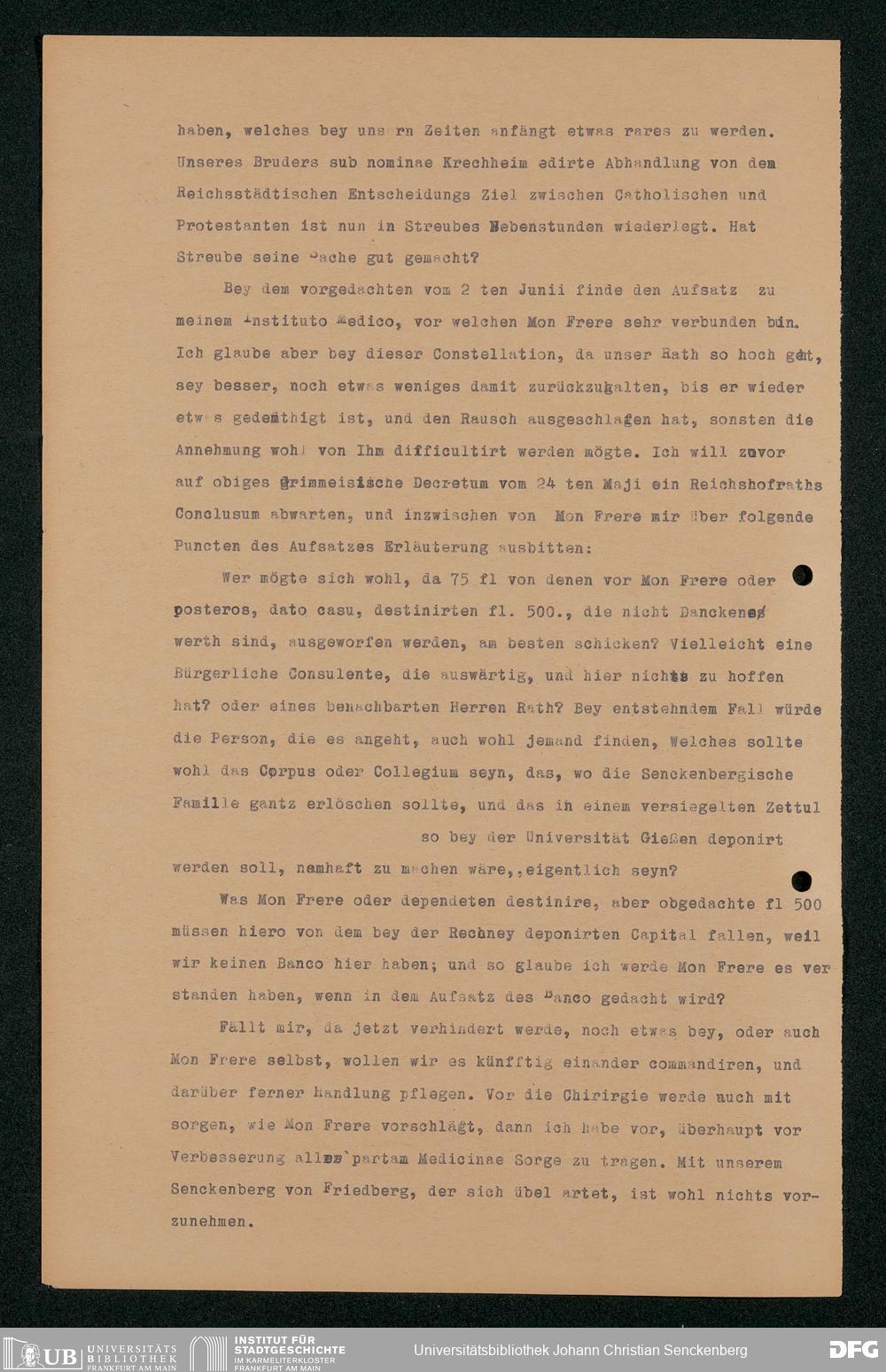 V48 Dr. Senckenbergische Stiftung, 202 - ... Transkriptionen der Briefe Johann Christian Senckenbergs an seinen Bruder Heinrich Christian von Senckenberg in Wien, Bd. 1