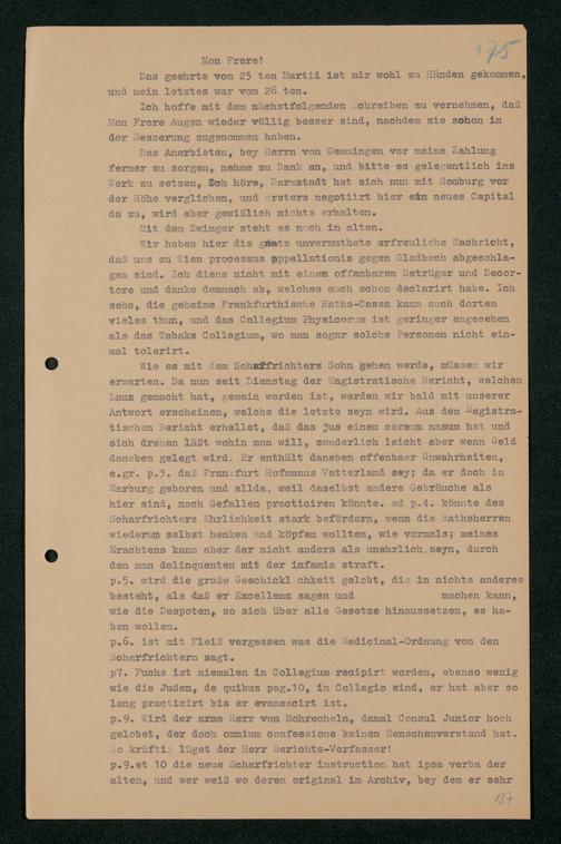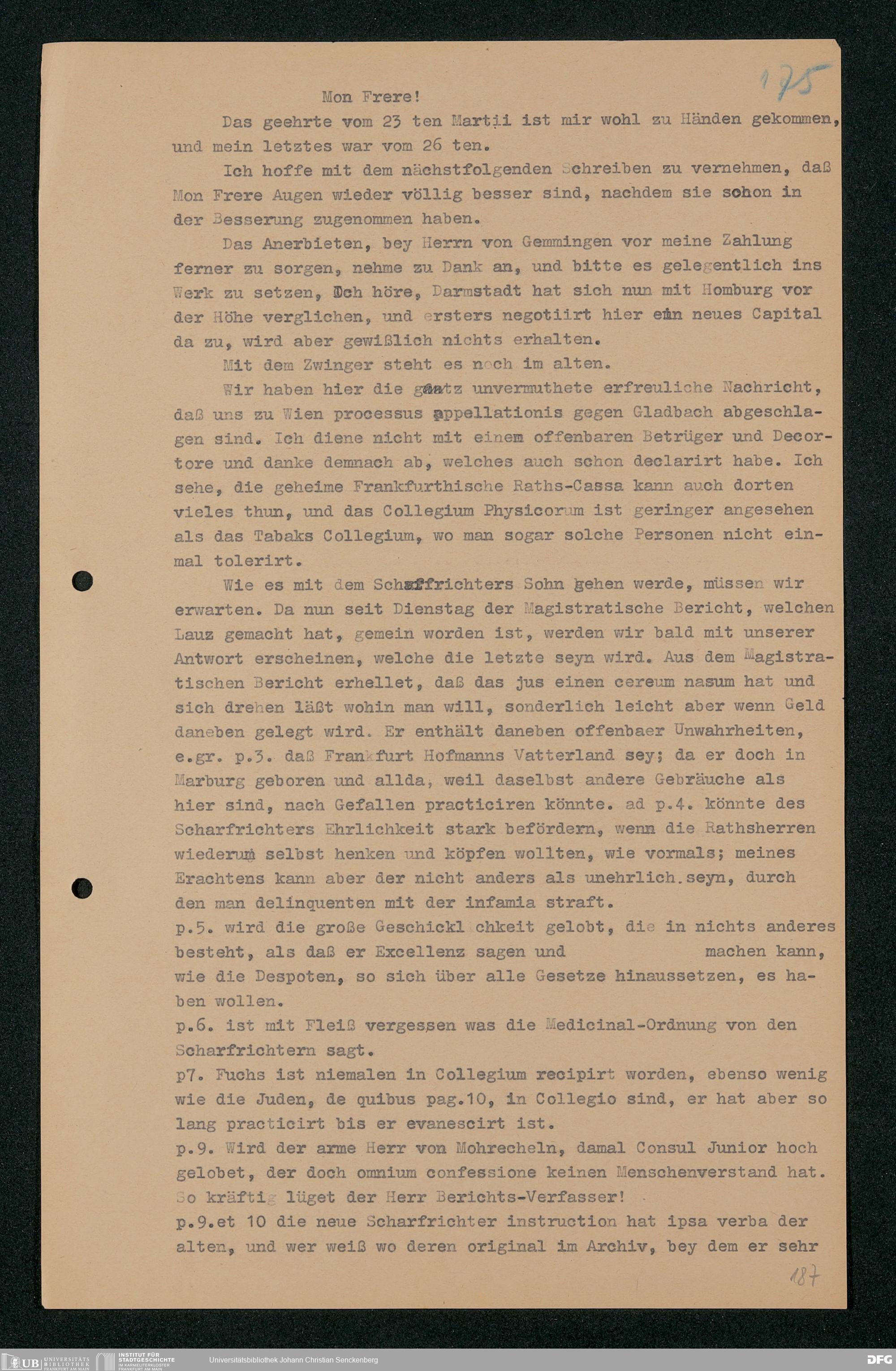 V48 Dr. Senckenbergische Stiftung, 202 - ... Transkriptionen der Briefe Johann Christian Senckenbergs an seinen Bruder Heinrich Christian von Senckenberg in Wien, Bd. 1