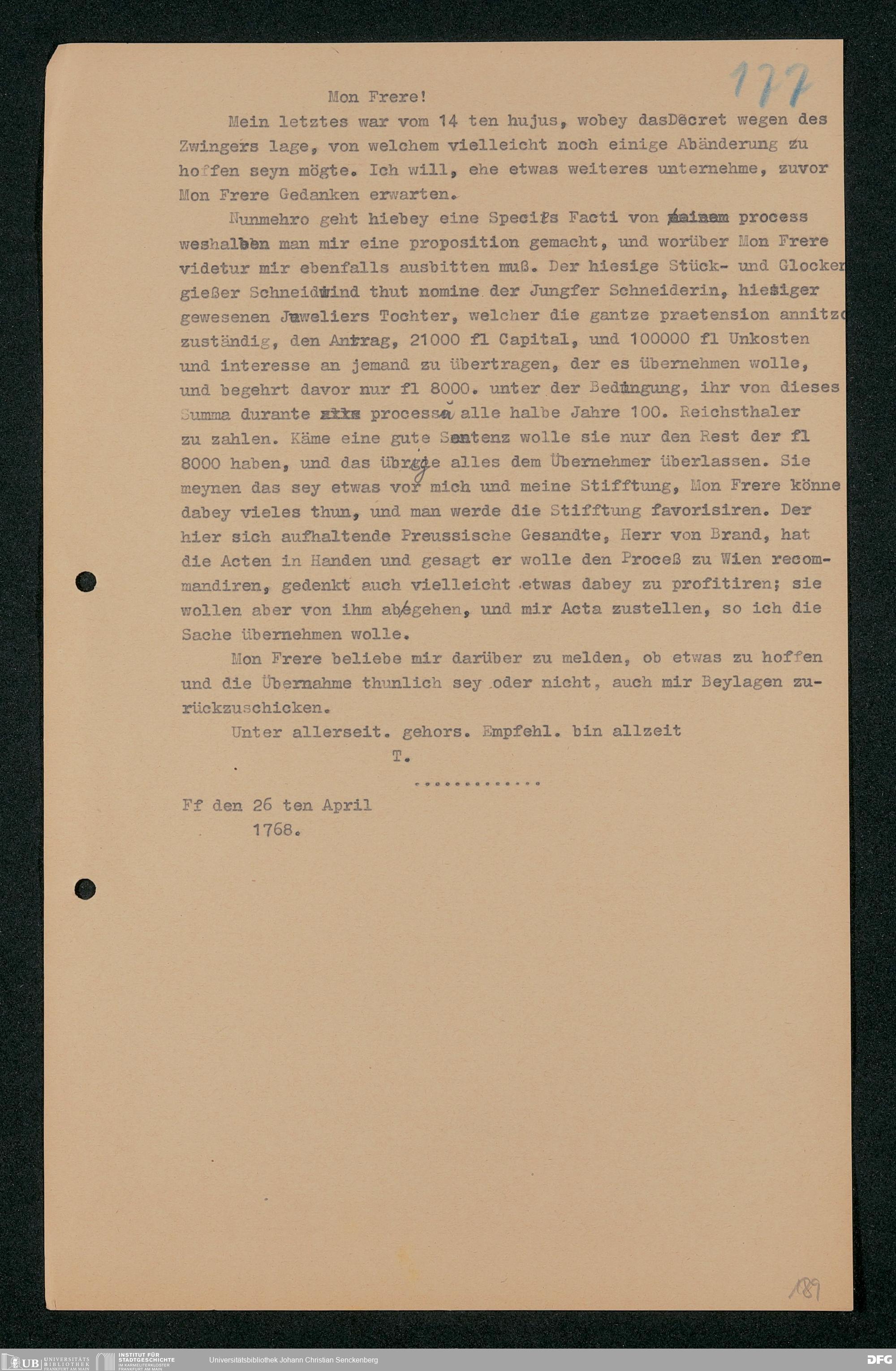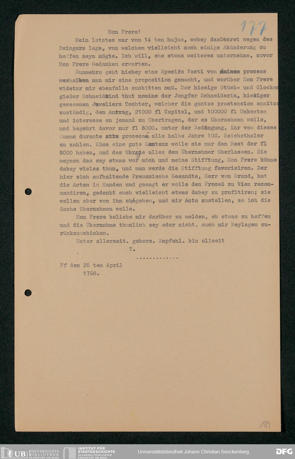 V48 Dr. Senckenbergische Stiftung, 202 - ... Transkriptionen der Briefe Johann Christian Senckenbergs an seinen Bruder Heinrich Christian von Senckenberg in Wien, Bd. 1