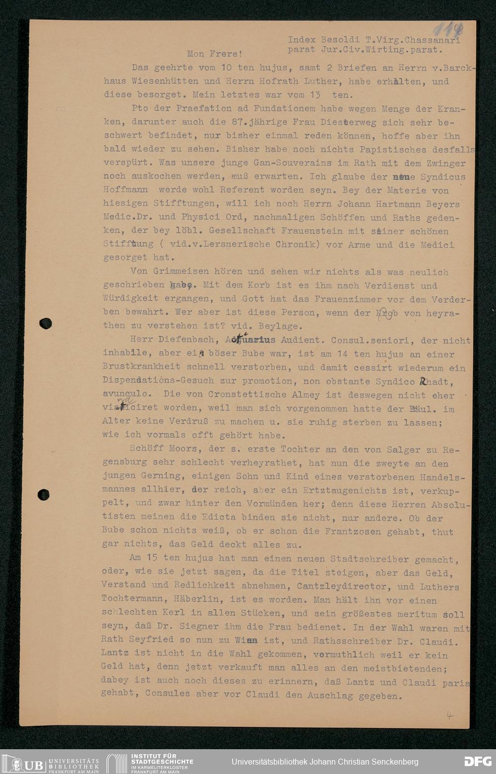 V48 Dr. Senckenbergische Stiftung, 203 - ... Transkriptionen der Briefe Johann Christian Senckenbergs an seinen Bruder Heinrich Christian von Senckenberg in Wien, Bd. 2