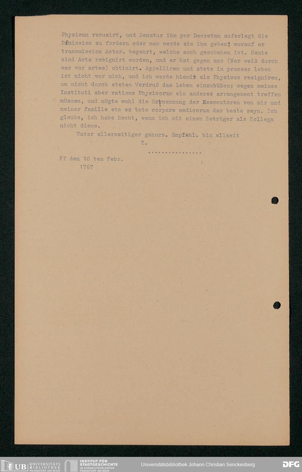 V48 Dr. Senckenbergische Stiftung, 203 - ... Transkriptionen der Briefe Johann Christian Senckenbergs an seinen Bruder Heinrich Christian von Senckenberg in Wien, Bd. 2