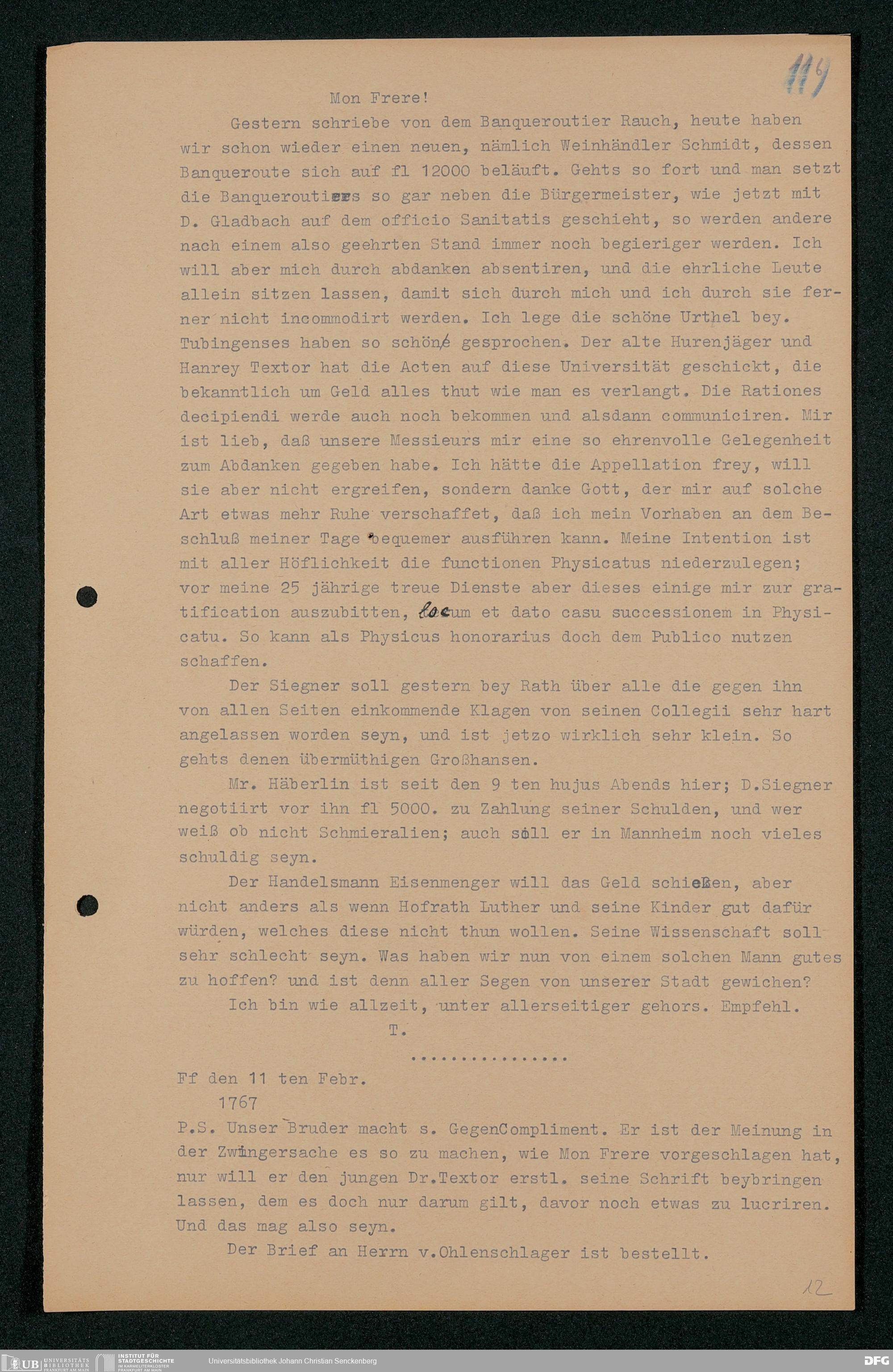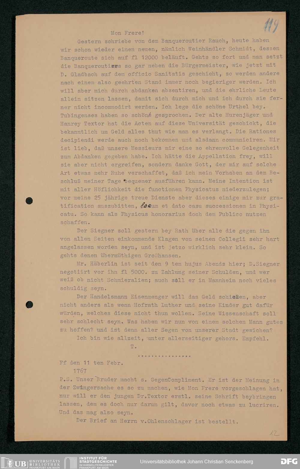 V48 Dr. Senckenbergische Stiftung, 203 - ... Transkriptionen der Briefe Johann Christian Senckenbergs an seinen Bruder Heinrich Christian von Senckenberg in Wien, Bd. 2