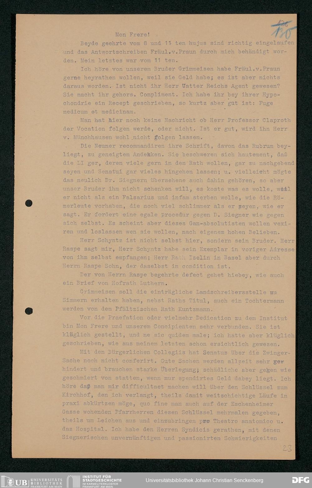 V48 Dr. Senckenbergische Stiftung, 203 - ... Transkriptionen der Briefe Johann Christian Senckenbergs an seinen Bruder Heinrich Christian von Senckenberg in Wien, Bd. 2