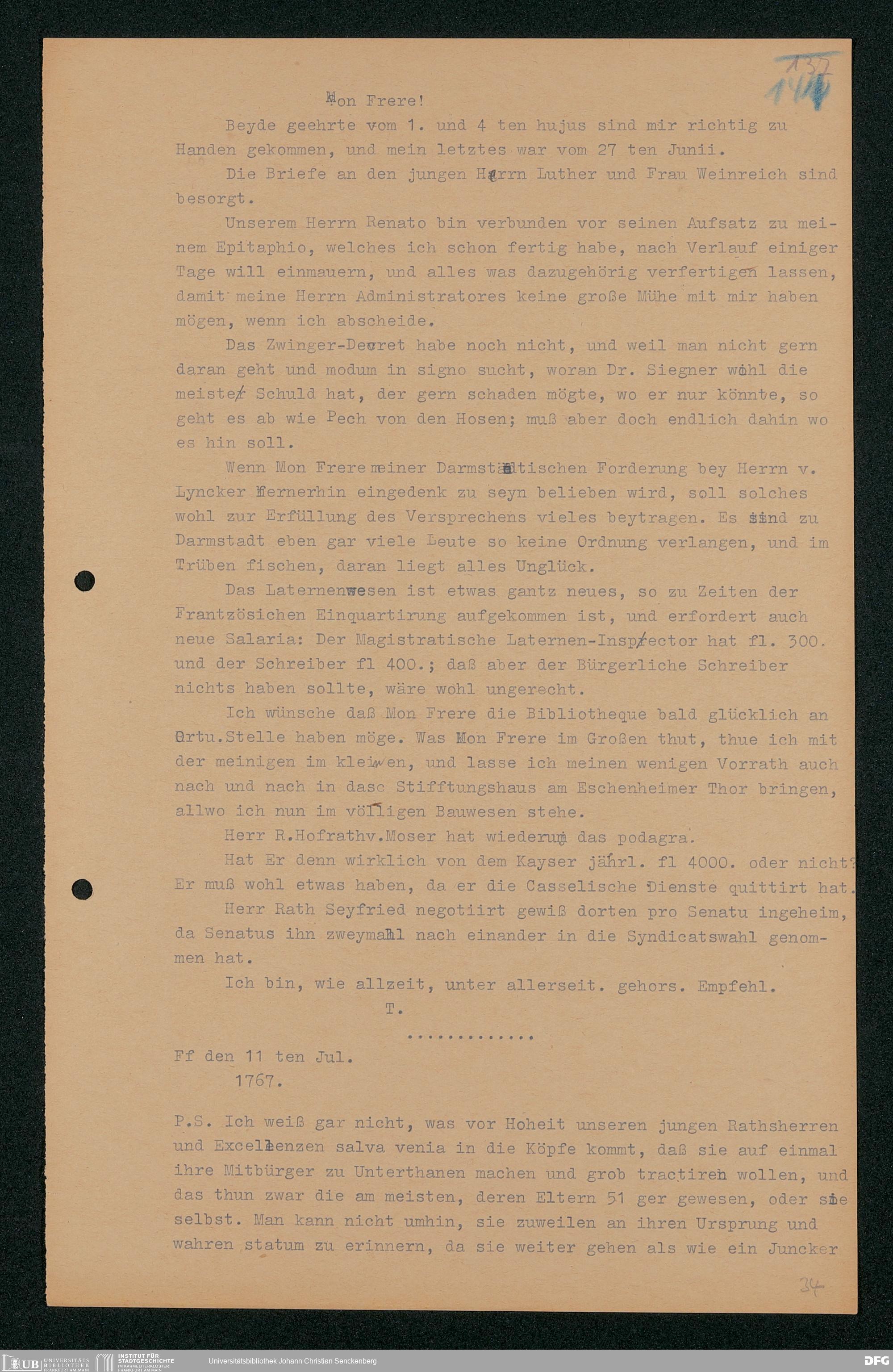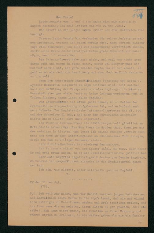 V48 Dr. Senckenbergische Stiftung, 203 - ... Transkriptionen der Briefe Johann Christian Senckenbergs an seinen Bruder Heinrich Christian von Senckenberg in Wien, Bd. 2