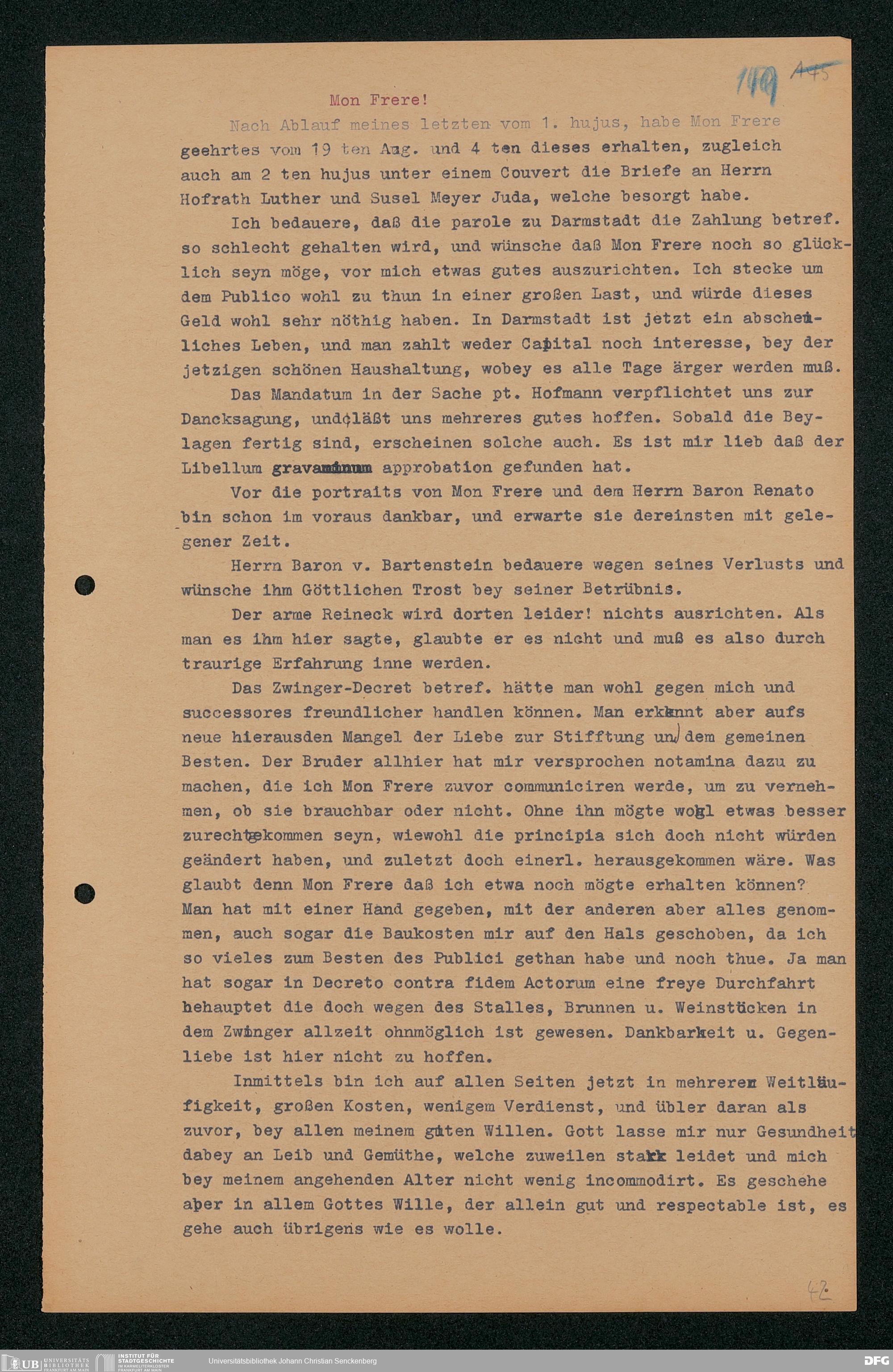 V48 Dr. Senckenbergische Stiftung, 203 - ... Transkriptionen der Briefe Johann Christian Senckenbergs an seinen Bruder Heinrich Christian von Senckenberg in Wien, Bd. 2