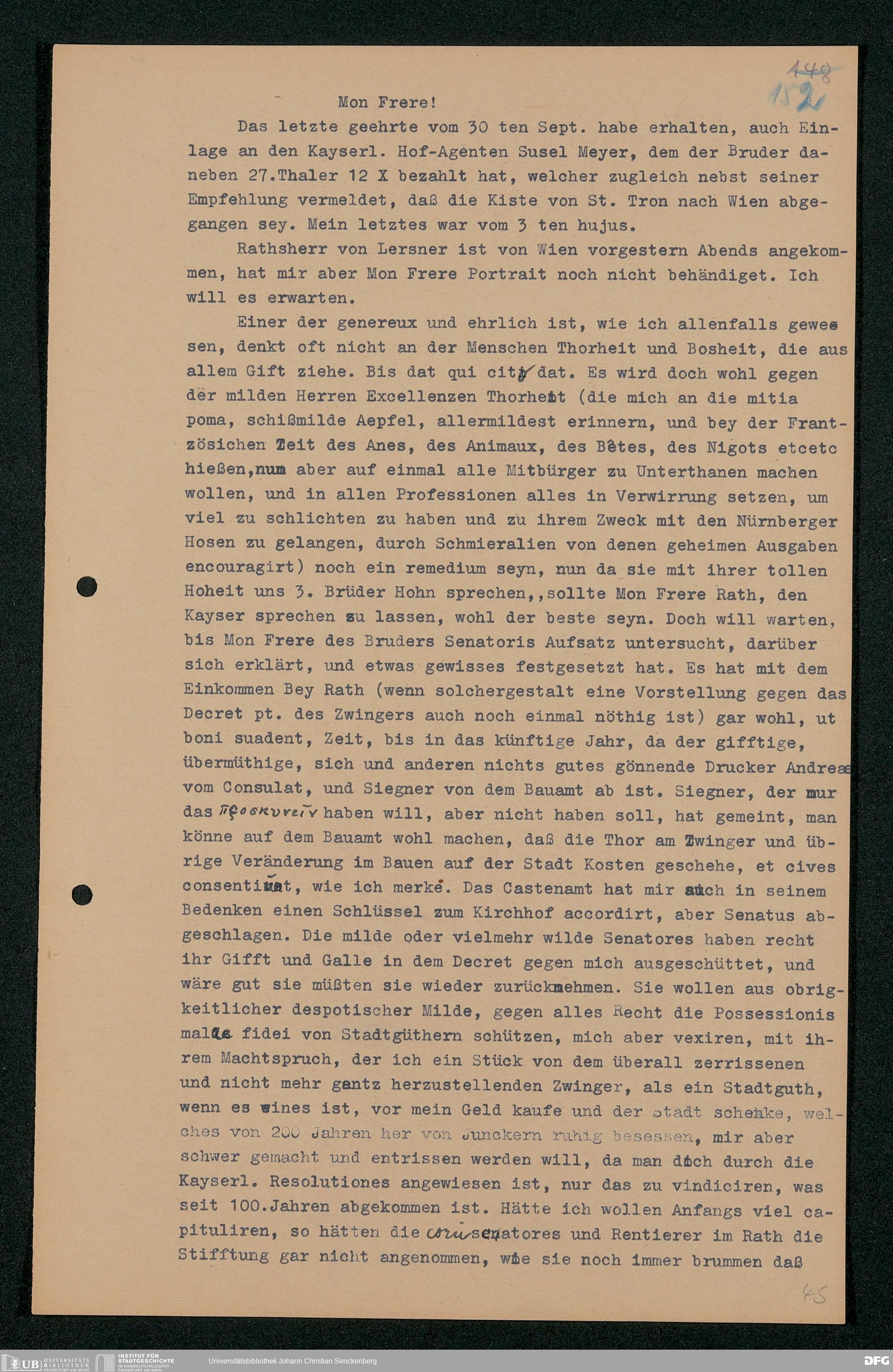 V48 Dr. Senckenbergische Stiftung, 203 - ... Transkriptionen der Briefe Johann Christian Senckenbergs an seinen Bruder Heinrich Christian von Senckenberg in Wien, Bd. 2