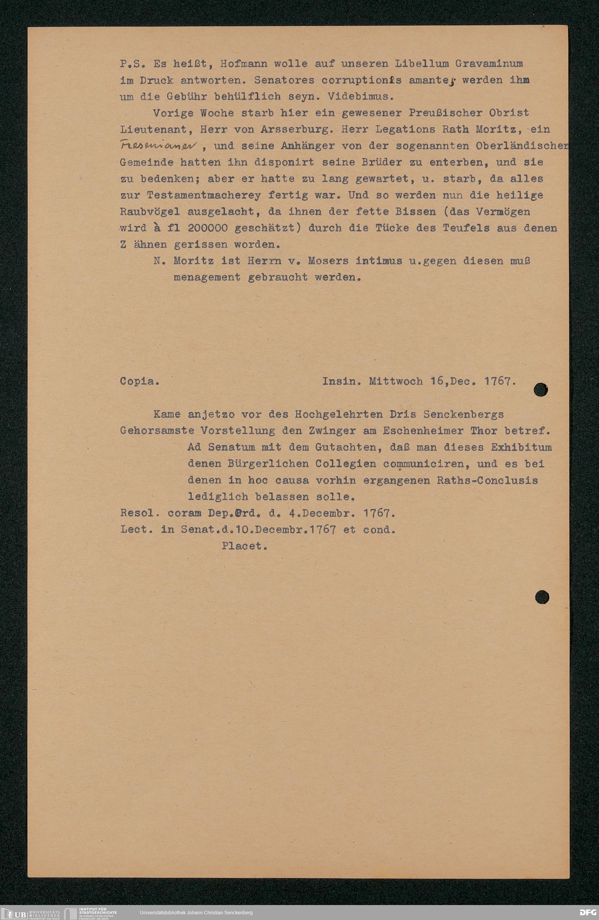 V48 Dr. Senckenbergische Stiftung, 203 - ... Transkriptionen der Briefe Johann Christian Senckenbergs an seinen Bruder Heinrich Christian von Senckenberg in Wien, Bd. 2