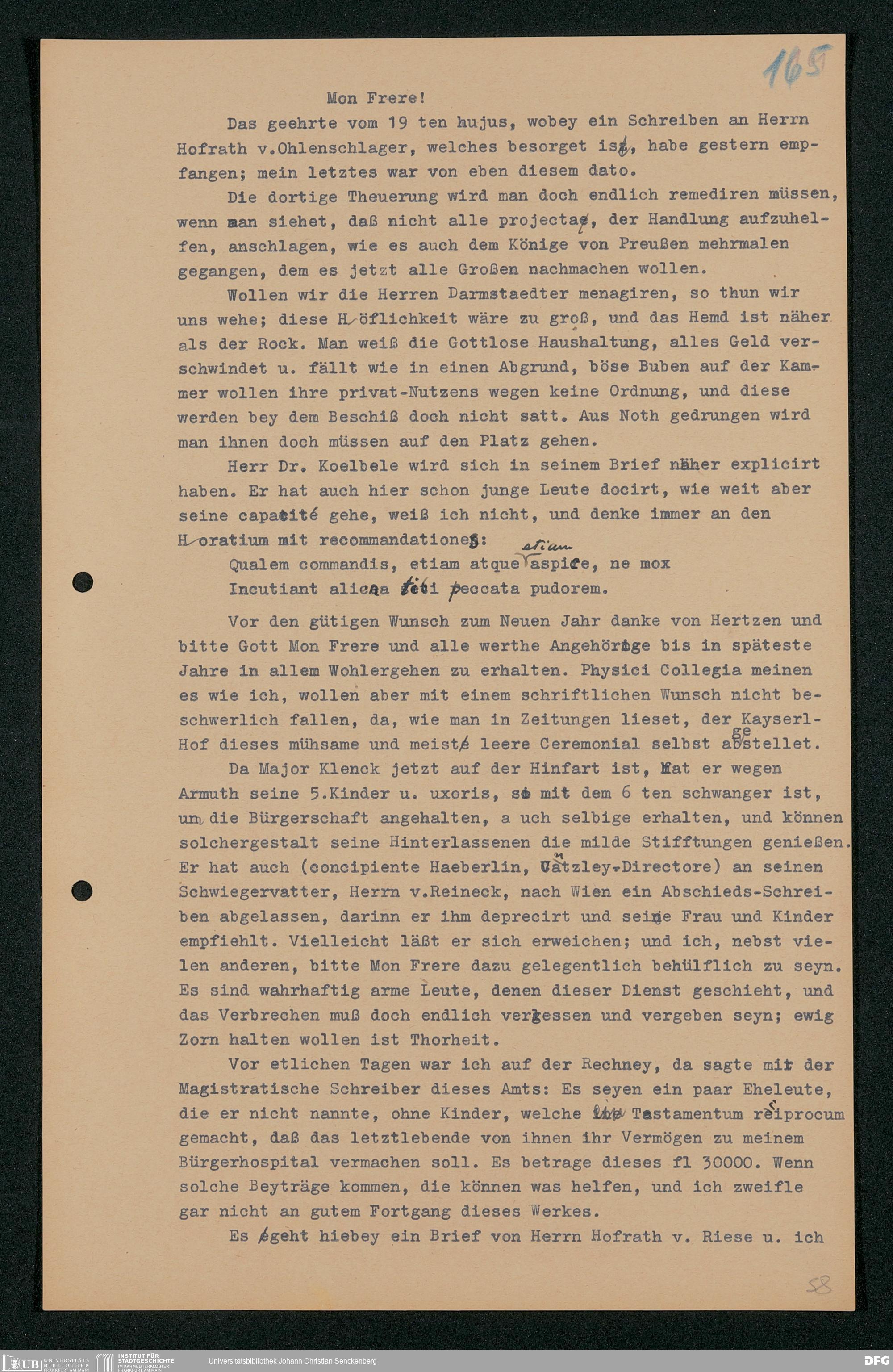 V48 Dr. Senckenbergische Stiftung, 203 - ... Transkriptionen der Briefe Johann Christian Senckenbergs an seinen Bruder Heinrich Christian von Senckenberg in Wien, Bd. 2