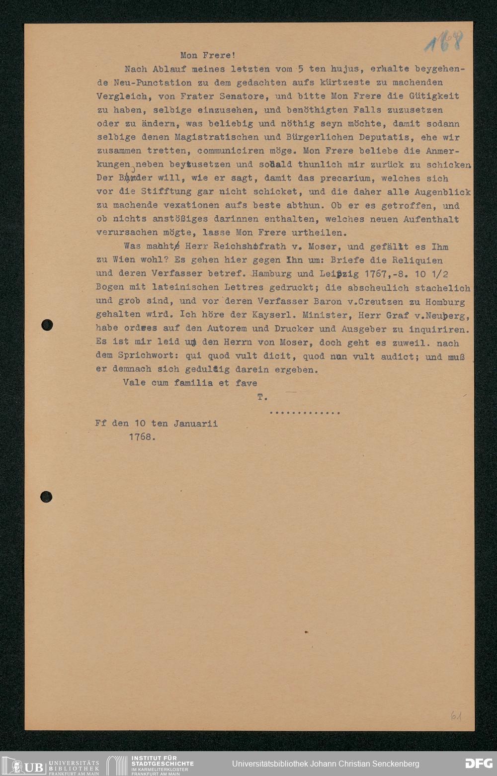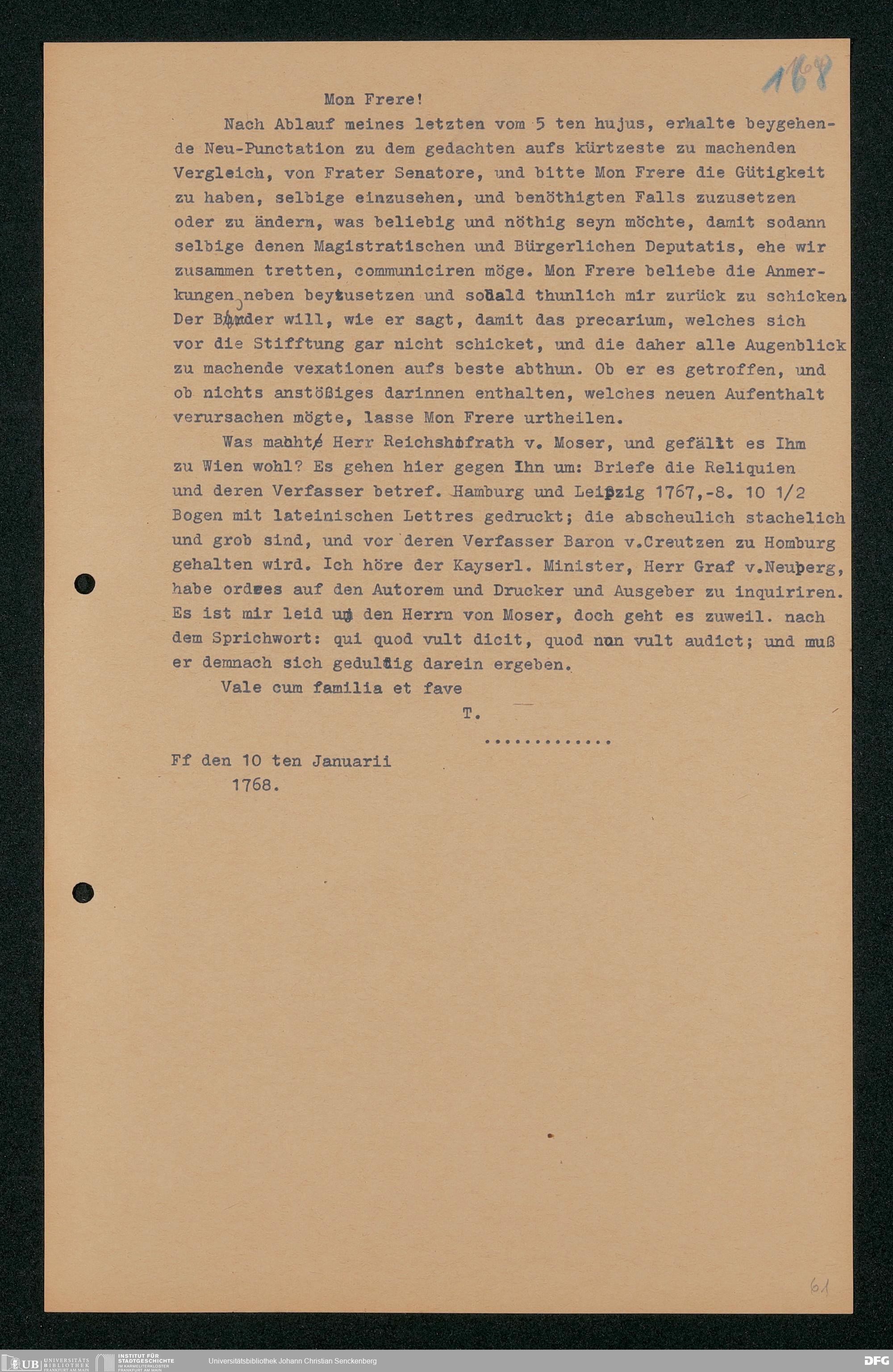V48 Dr. Senckenbergische Stiftung, 203 - ... Transkriptionen der Briefe Johann Christian Senckenbergs an seinen Bruder Heinrich Christian von Senckenberg in Wien, Bd. 2