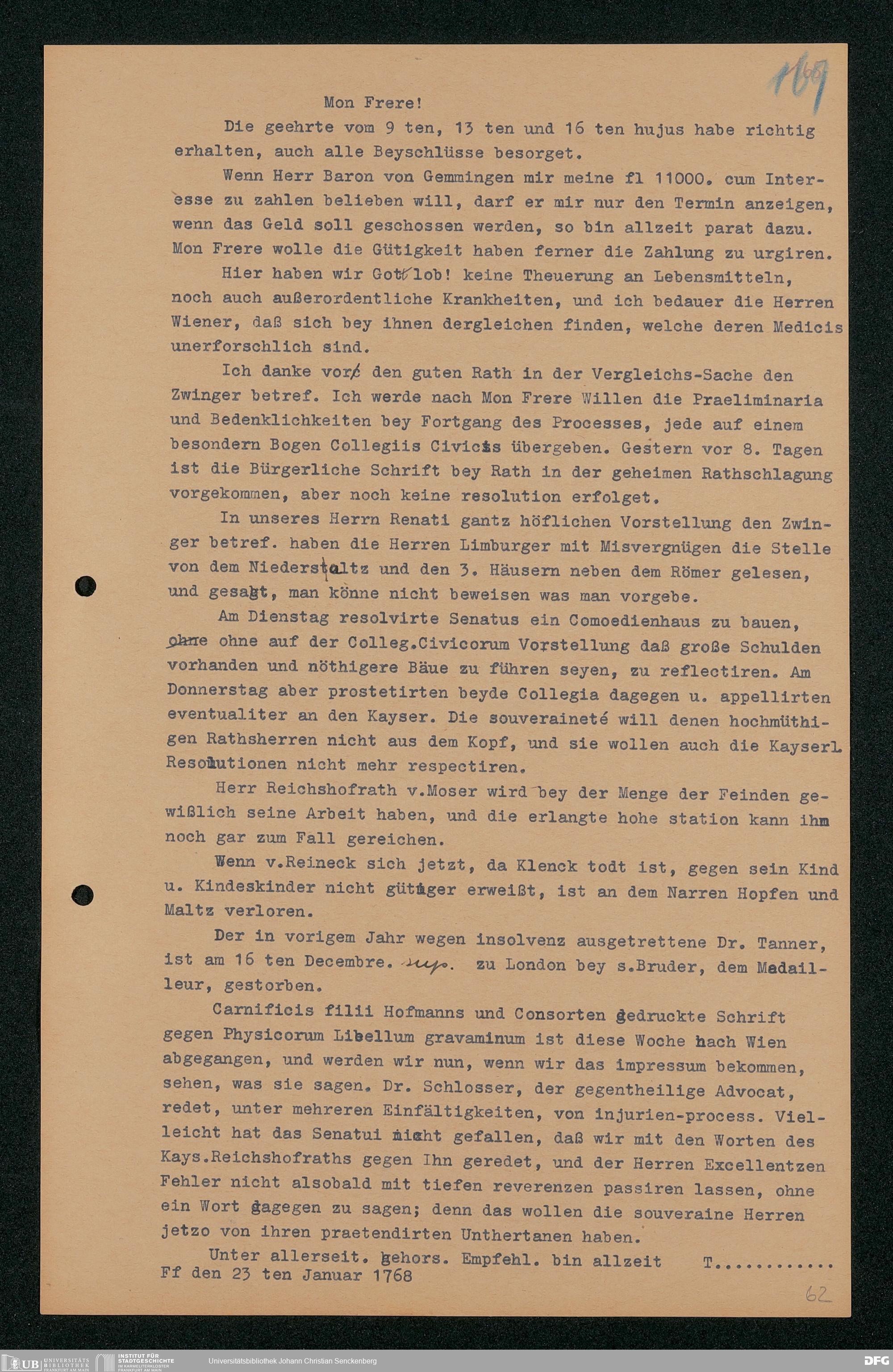 V48 Dr. Senckenbergische Stiftung, 203 - ... Transkriptionen der Briefe Johann Christian Senckenbergs an seinen Bruder Heinrich Christian von Senckenberg in Wien, Bd. 2