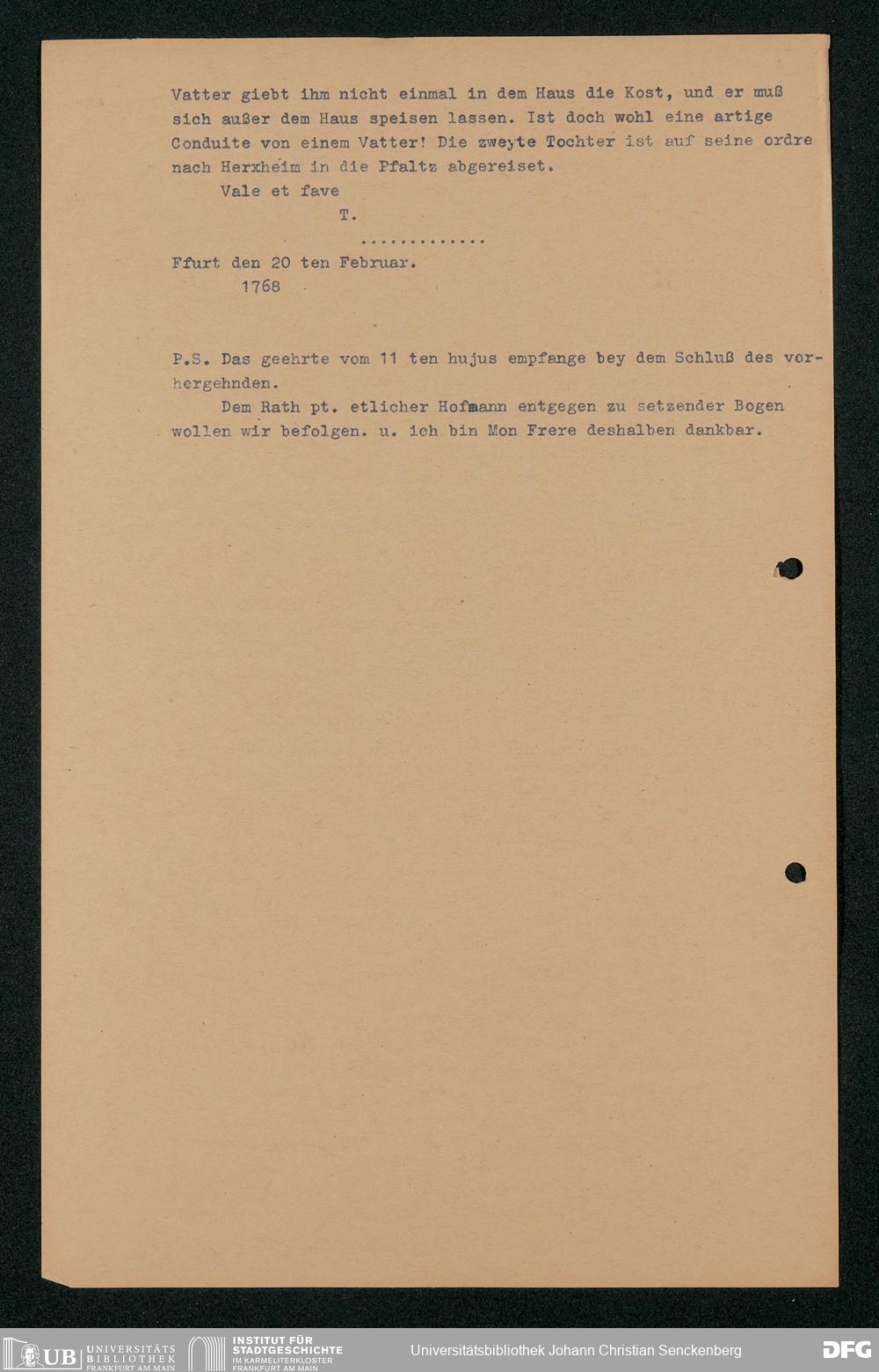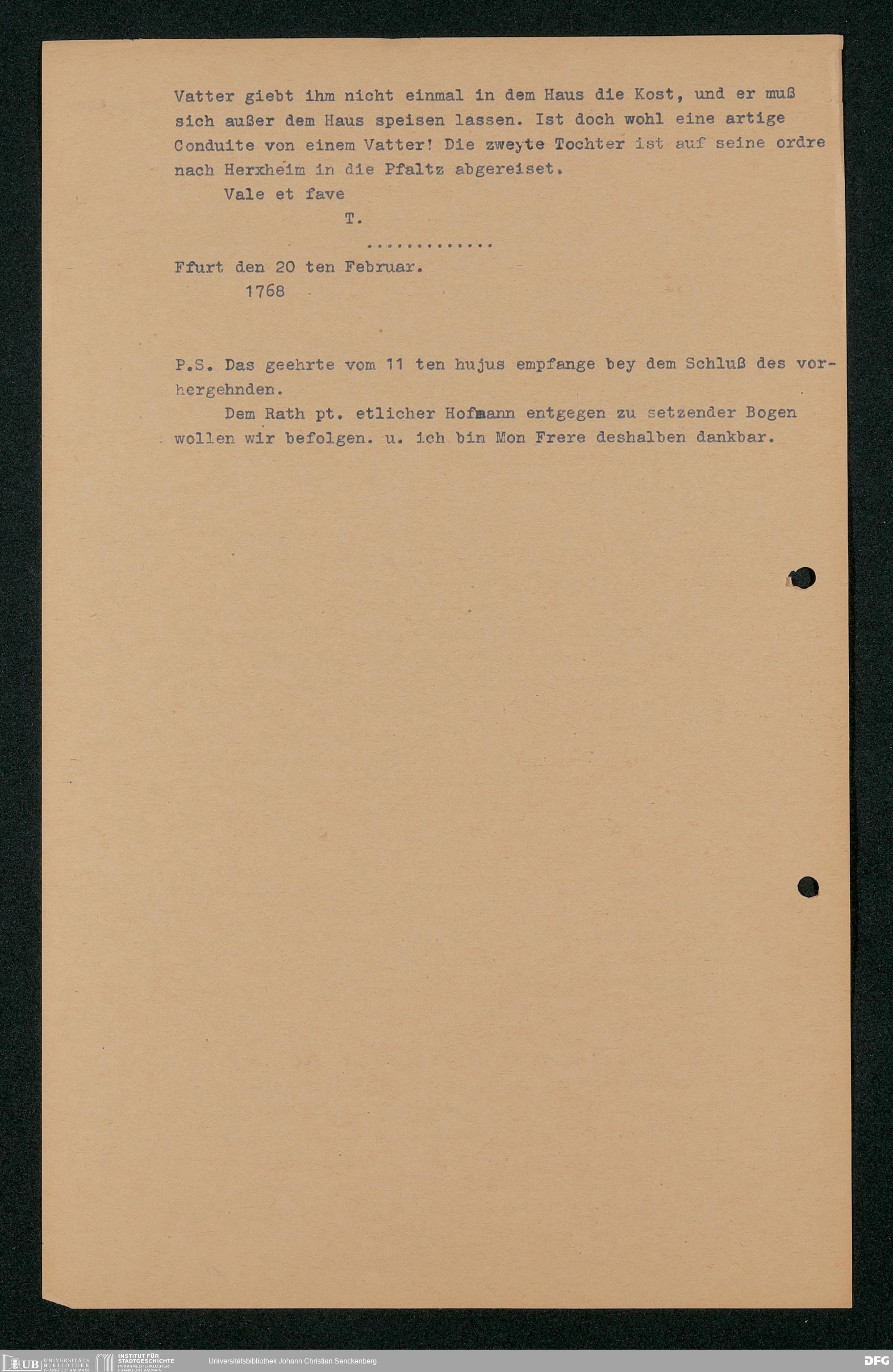 V48 Dr. Senckenbergische Stiftung, 203 - ... Transkriptionen der Briefe Johann Christian Senckenbergs an seinen Bruder Heinrich Christian von Senckenberg in Wien, Bd. 2
