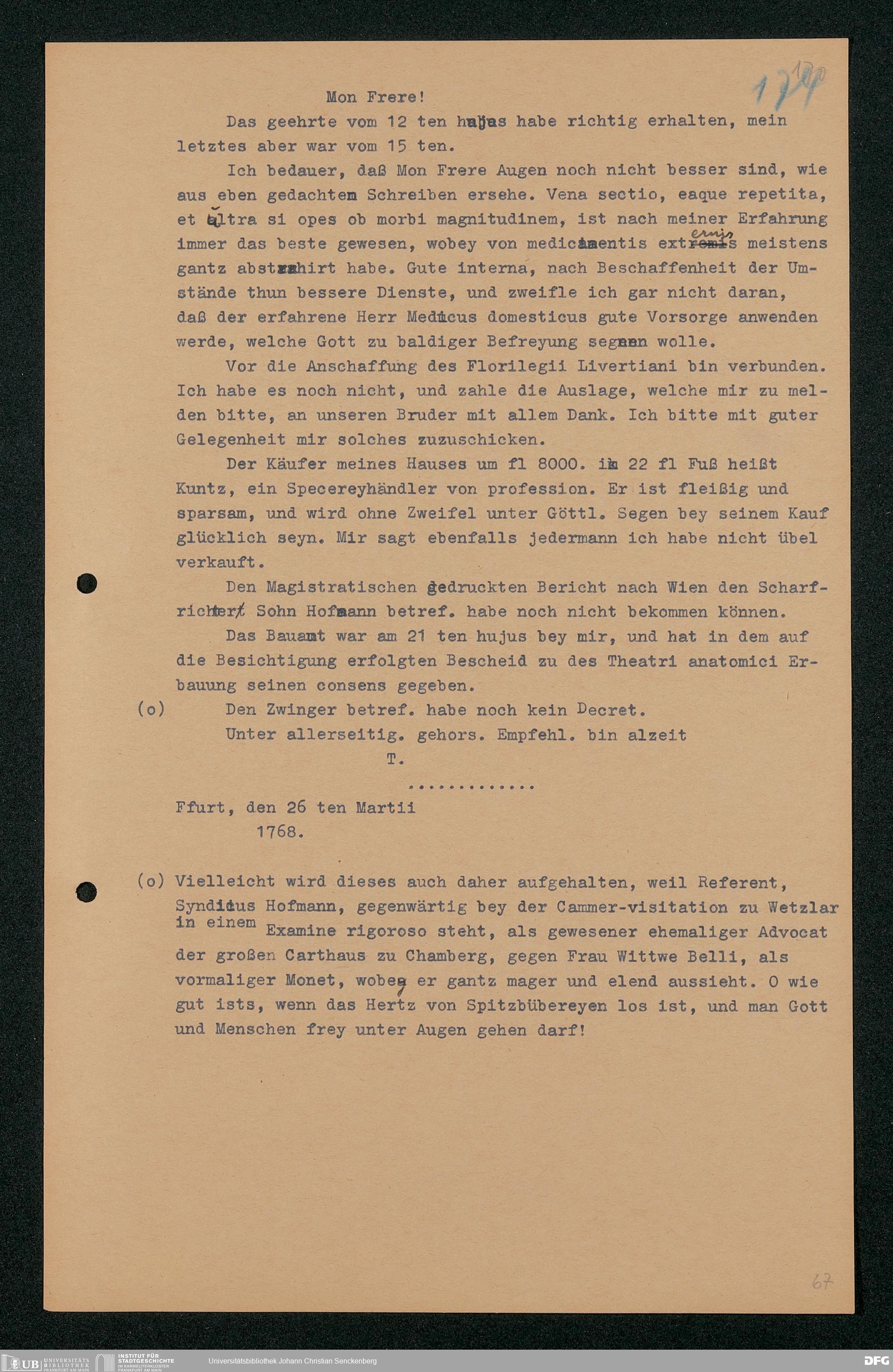 V48 Dr. Senckenbergische Stiftung, 203 - ... Transkriptionen der Briefe Johann Christian Senckenbergs an seinen Bruder Heinrich Christian von Senckenberg in Wien, Bd. 2