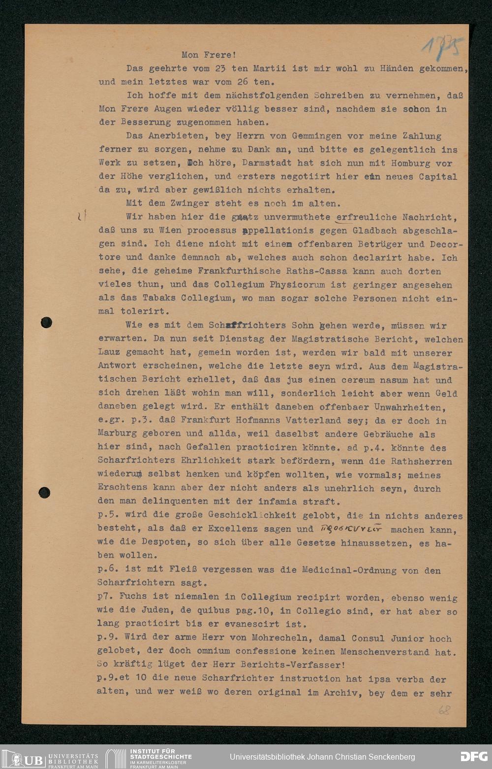V48 Dr. Senckenbergische Stiftung, 203 - ... Transkriptionen der Briefe Johann Christian Senckenbergs an seinen Bruder Heinrich Christian von Senckenberg in Wien, Bd. 2