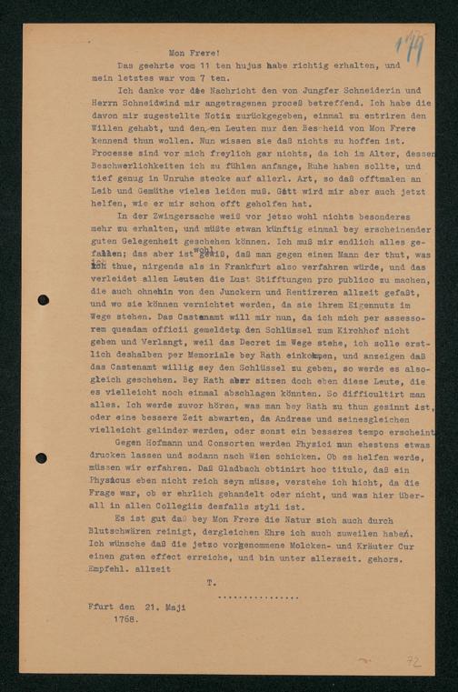 V48 Dr. Senckenbergische Stiftung, 203 - ... Transkriptionen der Briefe Johann Christian Senckenbergs an seinen Bruder Heinrich Christian von Senckenberg in Wien, Bd. 2