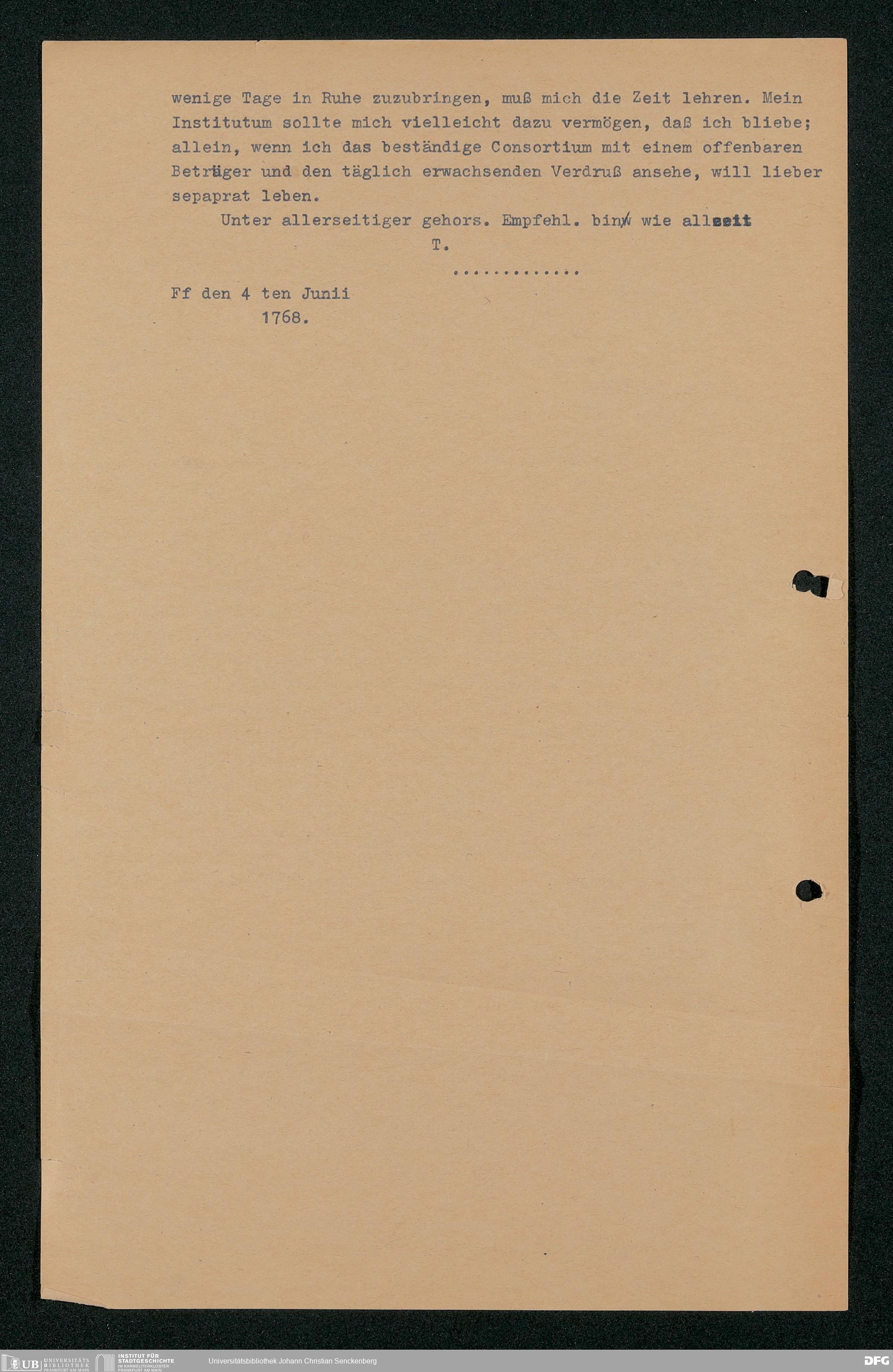 V48 Dr. Senckenbergische Stiftung, 203 - ... Transkriptionen der Briefe Johann Christian Senckenbergs an seinen Bruder Heinrich Christian von Senckenberg in Wien, Bd. 2