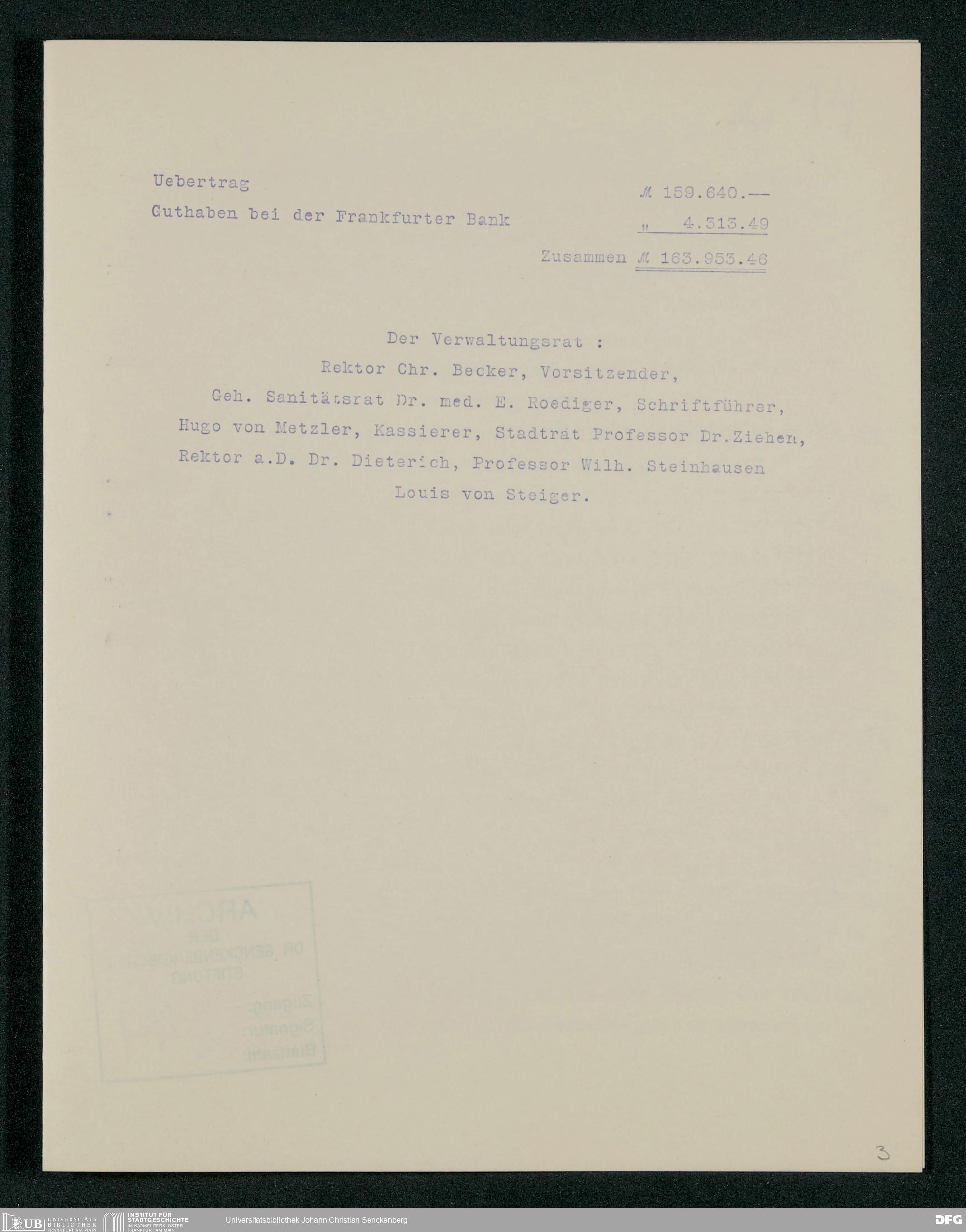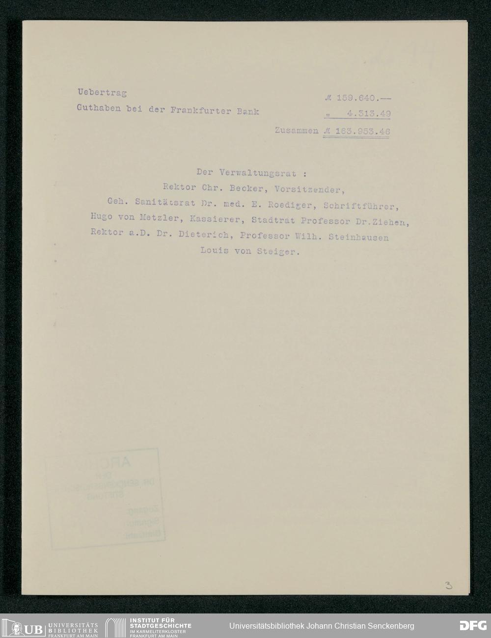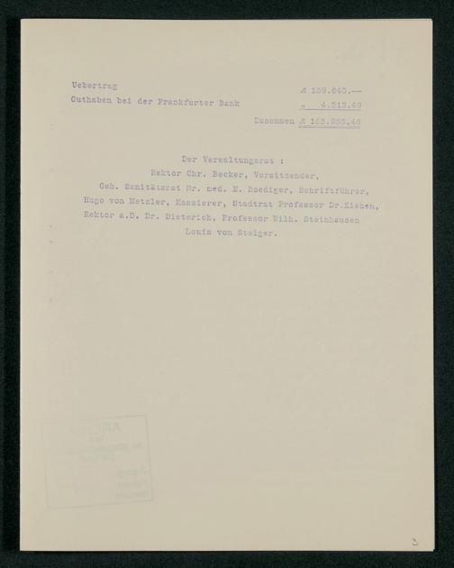 V48 Dr. Senckenbergische Stiftung, 214 - Palmsonntag-Stiftung zu Frankfurt a. M., Bericht des Verwaltungsrats über Aufgabe und Tätigkeit der Stiftung 1919 erstattet in öffentlicher Sitzung am 29. Dezember 1919