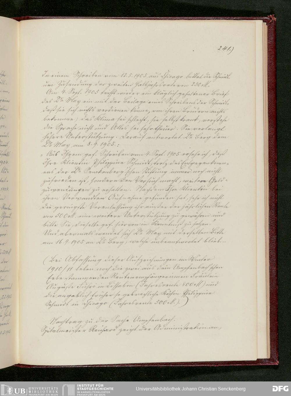 V48 Dr. Senckenbergische Stiftung, 226 - "Die Dr. Senckenbergische Stiftung in den Jahren 1856 bis Ende 1899" von Friedrich Wendling, Frankfurt 1910/11