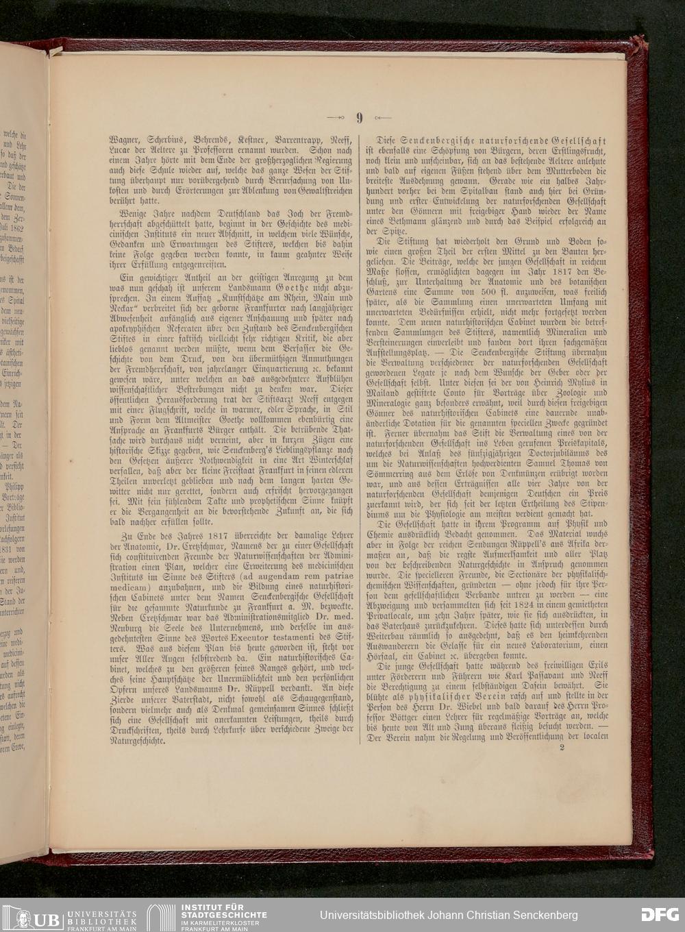 V48 Dr. Senckenbergische Stiftung, 226 - "Die Dr. Senckenbergische Stiftung in den Jahren 1856 bis Ende 1899" von Friedrich Wendling, Frankfurt 1910/11