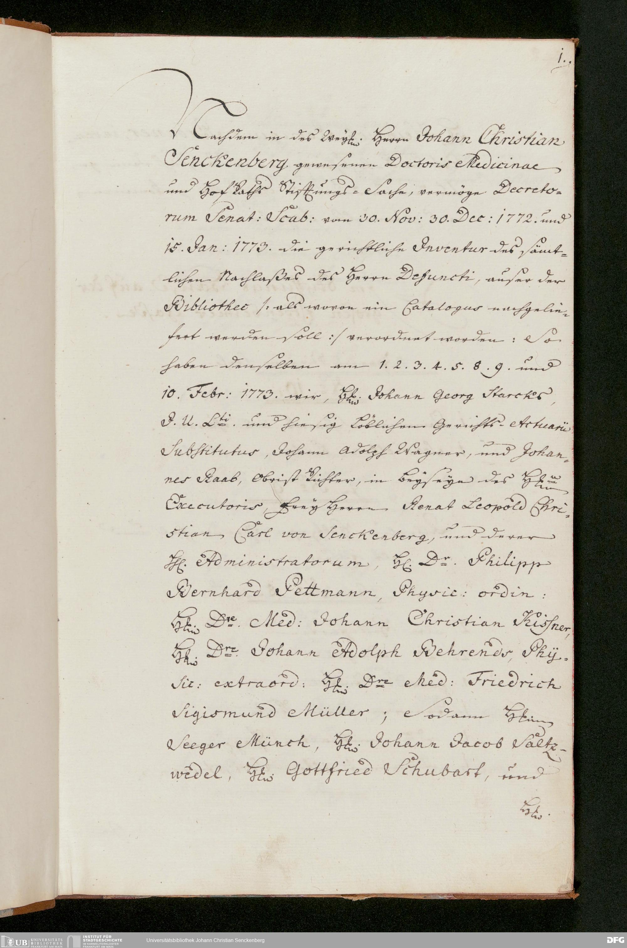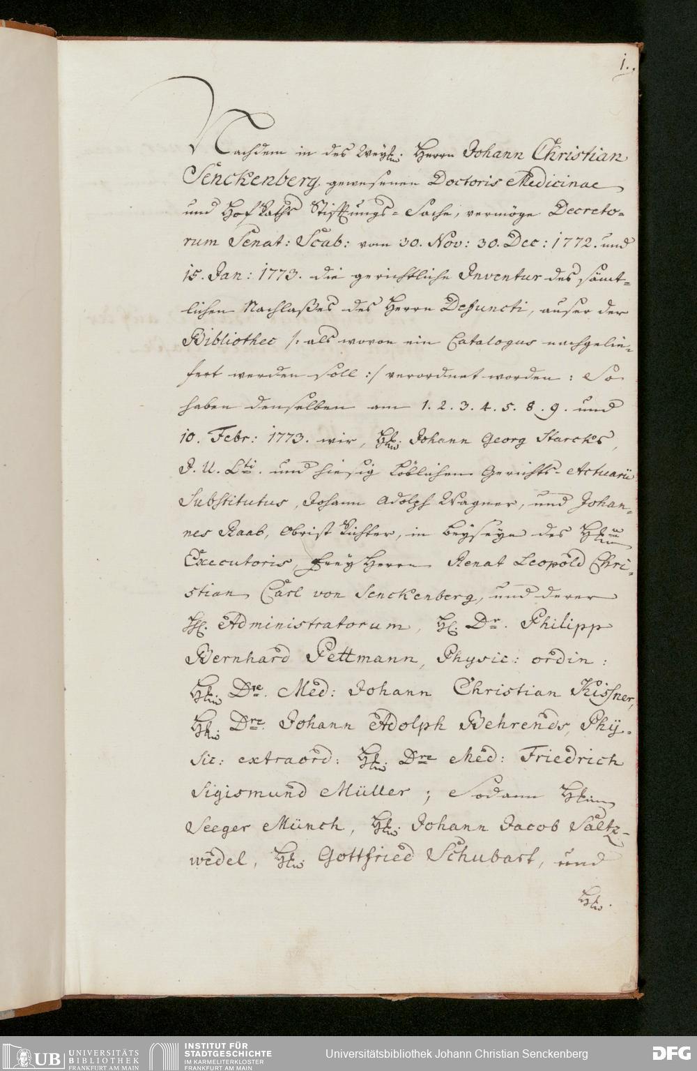 V48 Dr. Senckenbergische Stiftung, 229 - Inventar des Nachlasses von Johann Christian Senckenberg
