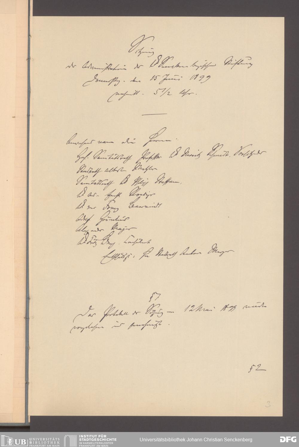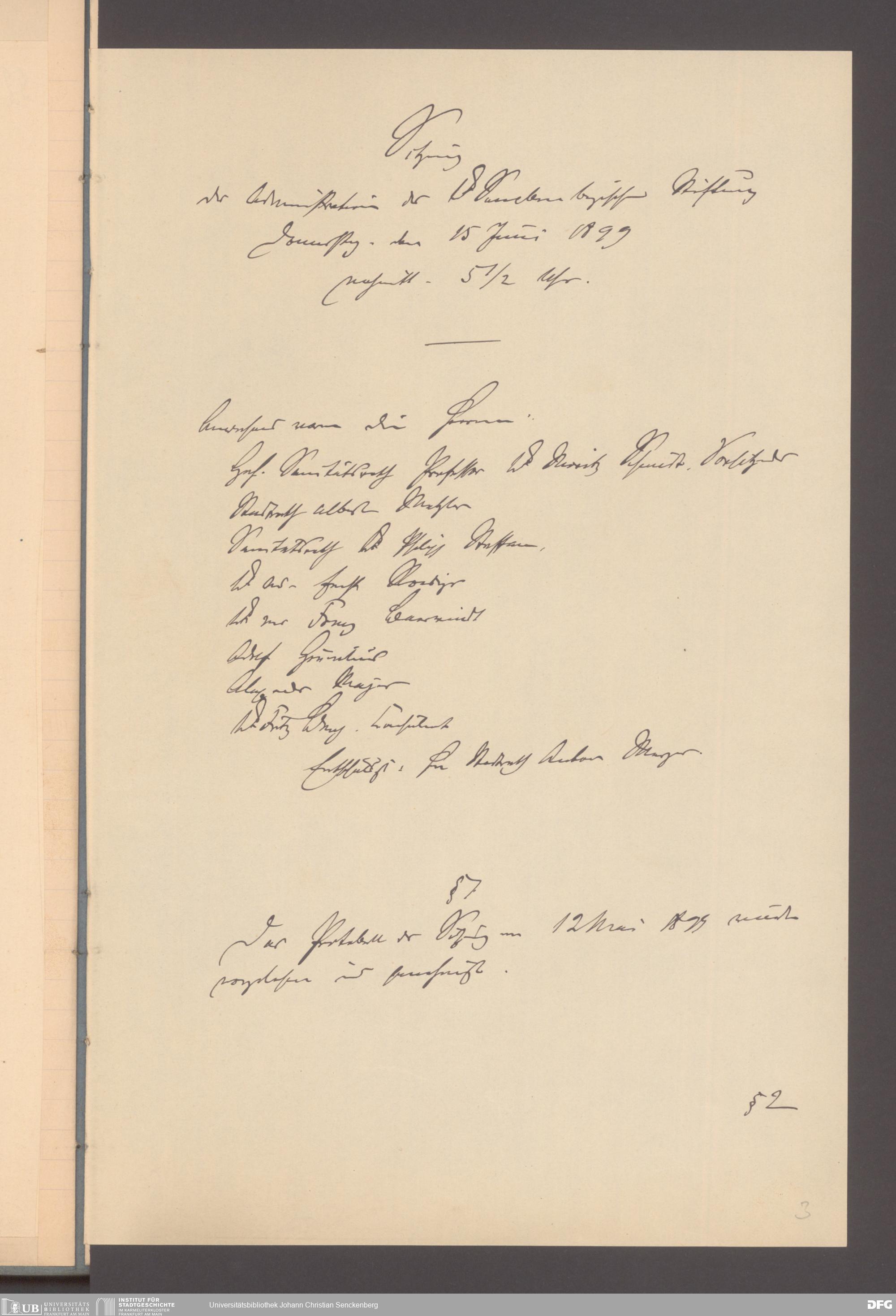 V48 Dr. Senckenbergische Stiftung, 165 - ... Sitzungsprotokolle der Dr. Senckenbergischen Stiftungsadministration (Abschriften), Bd. 3