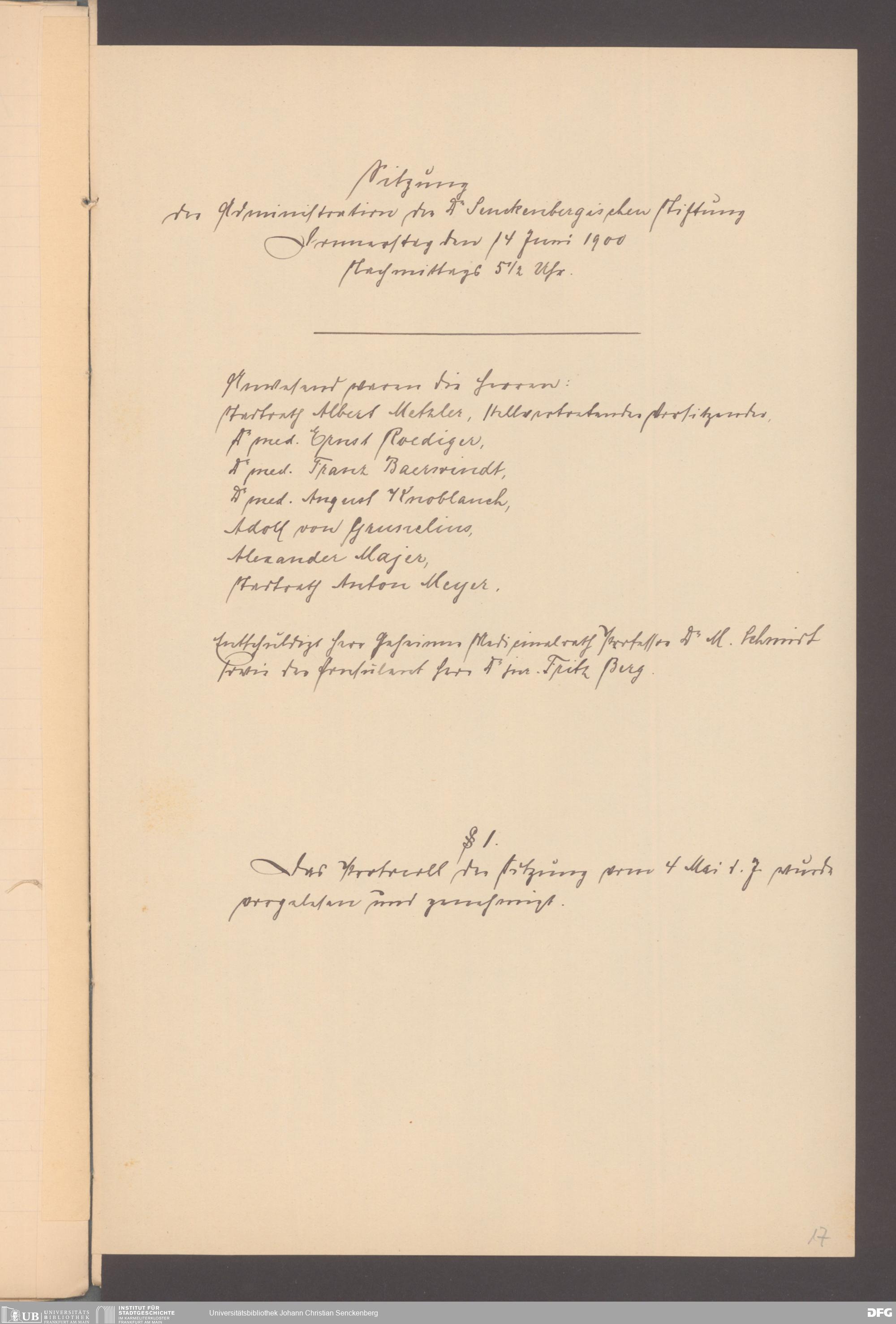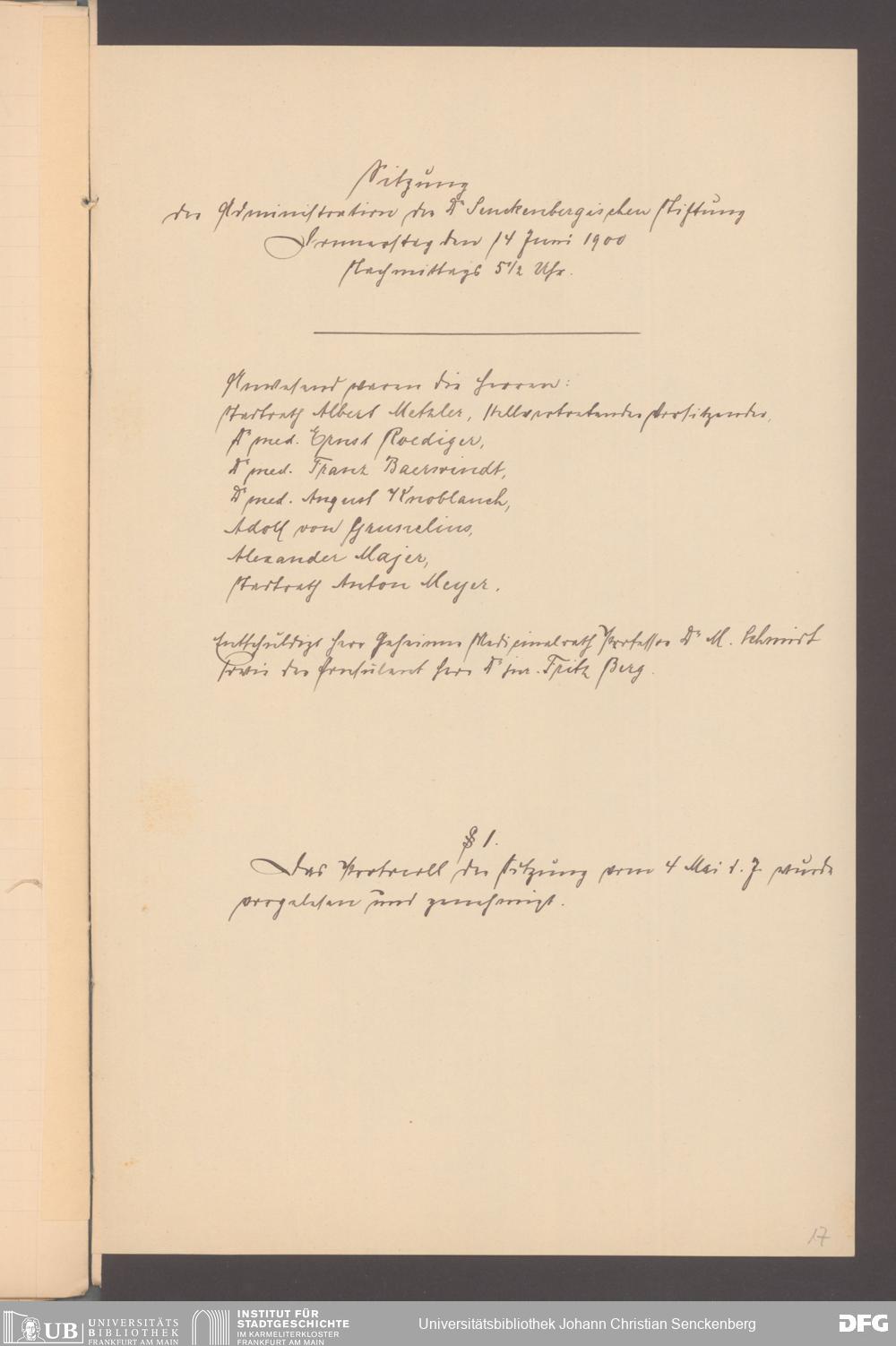 V48 Dr. Senckenbergische Stiftung, 165 - ... Sitzungsprotokolle der Dr. Senckenbergischen Stiftungsadministration (Abschriften), Bd. 3