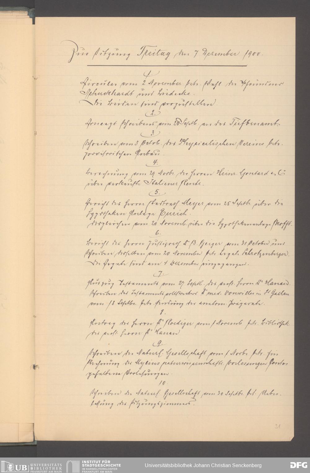 V48 Dr. Senckenbergische Stiftung, 165 - ... Sitzungsprotokolle der Dr. Senckenbergischen Stiftungsadministration (Abschriften), Bd. 3