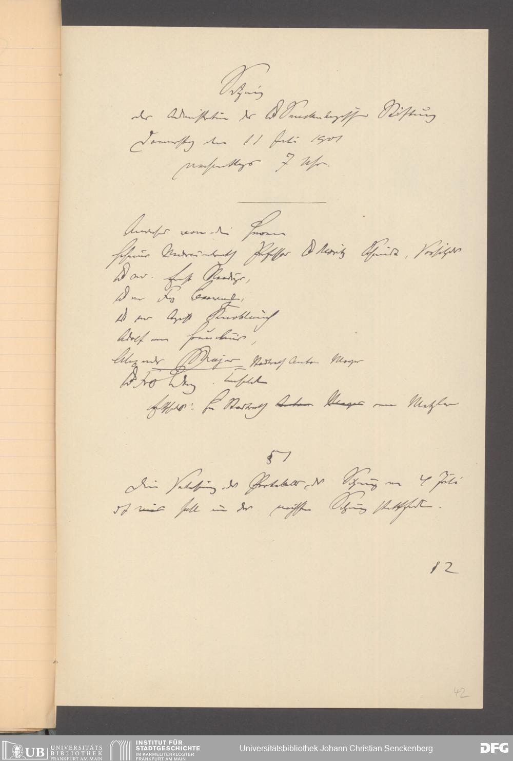 V48 Dr. Senckenbergische Stiftung, 165 - ... Sitzungsprotokolle der Dr. Senckenbergischen Stiftungsadministration (Abschriften), Bd. 3